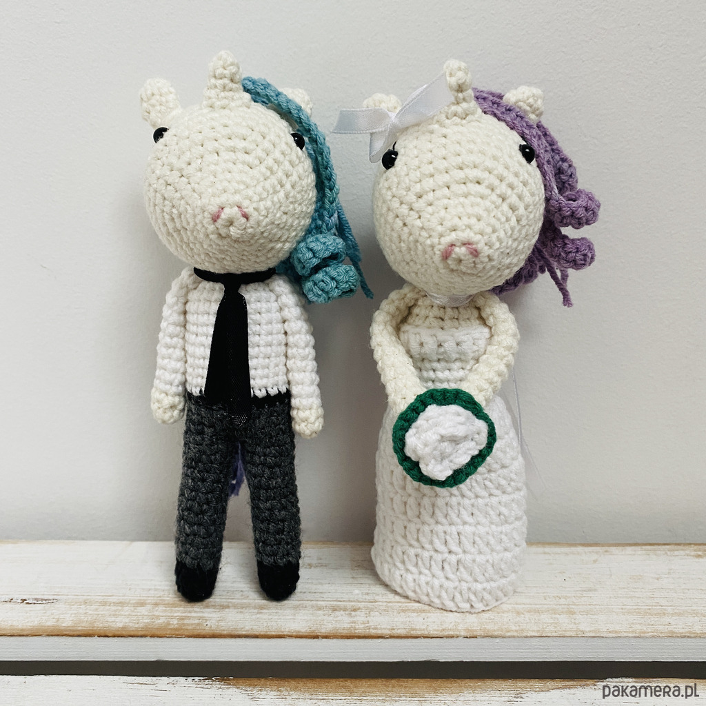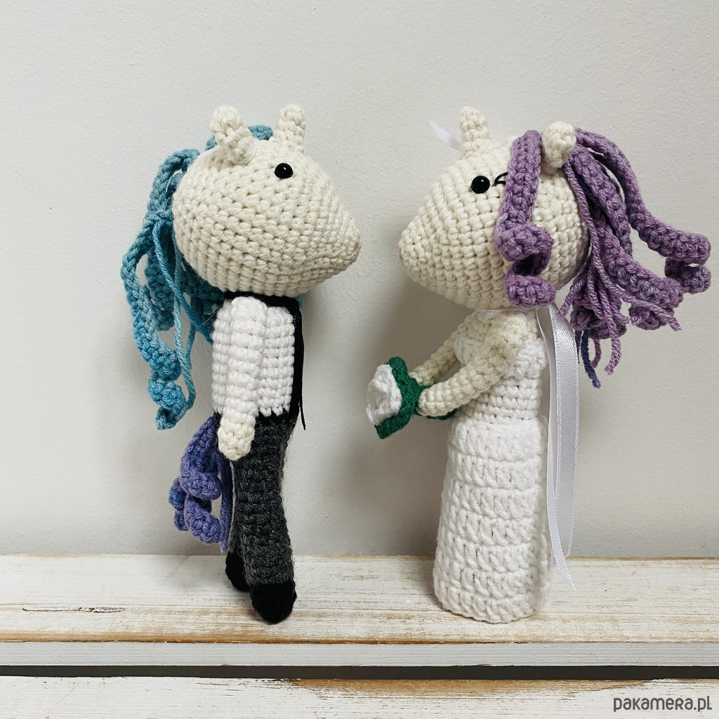 Młoda Para – jednorożce maskotki ręcznie robione na szydełku – idealny prezent ślubny