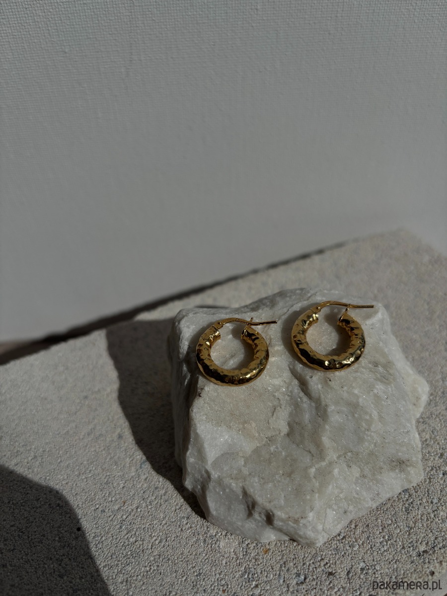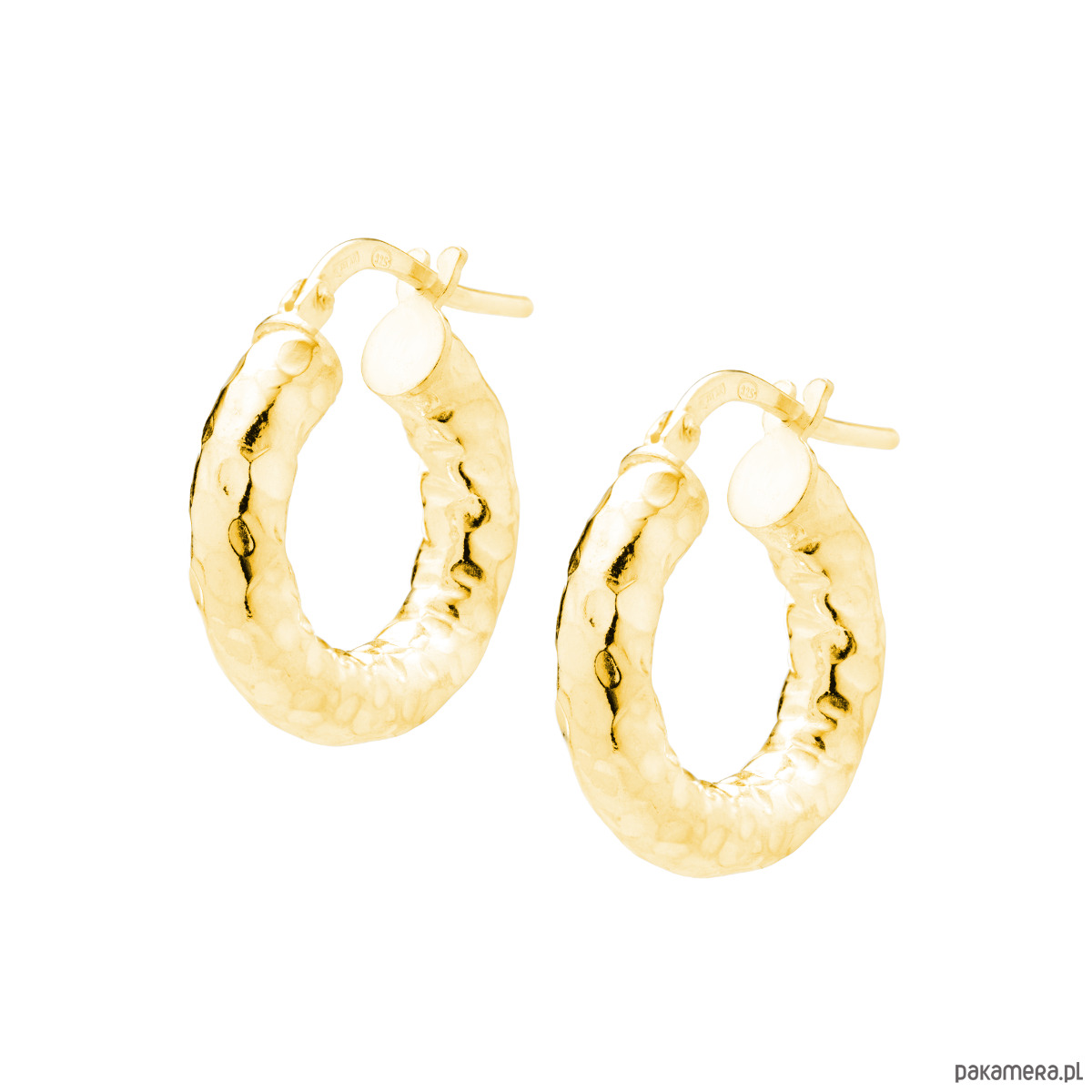 Pozłacane 24-karatowym złotem kolczyki koła młotkowane.