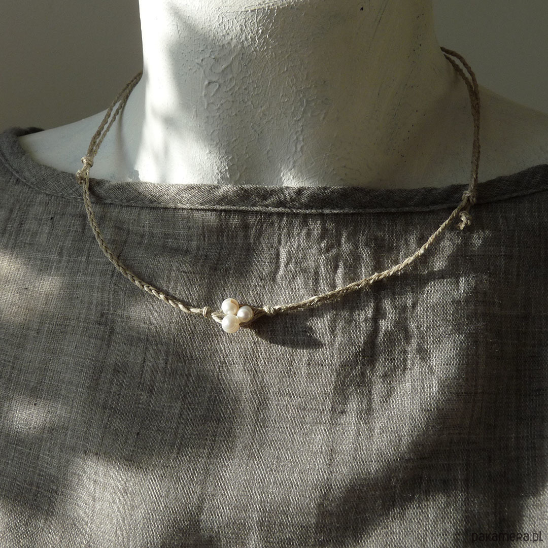 Wygodny, lekki, minimalistyczny naszyjnik wypleciony z nitek naturalnego lnu