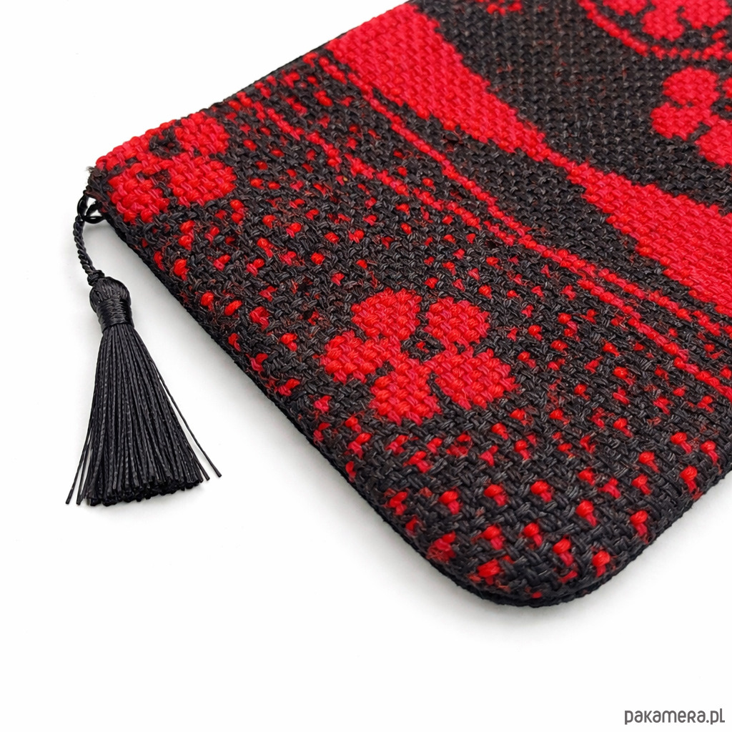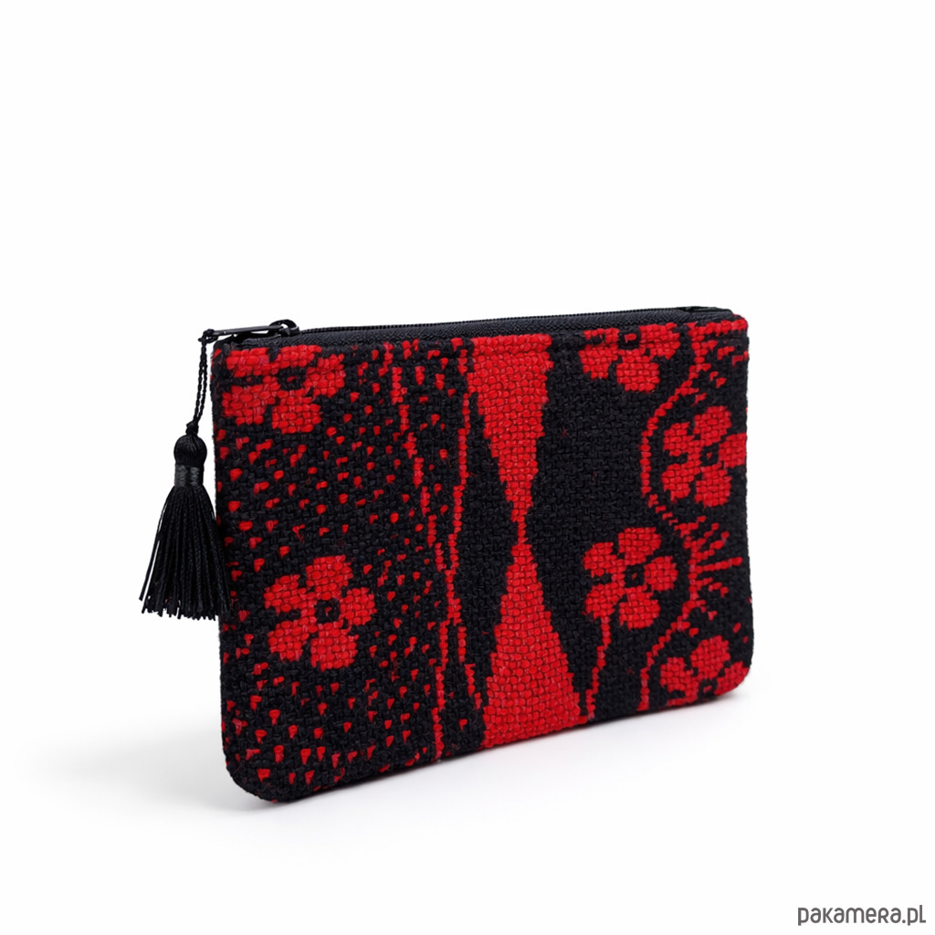 Wyjątkowa kosmetyczka handmade, uszyta w duchu upcyclingu z wysokiej jakości tkanin z drugiego obiegu. Przód wykonany jest z oryginalnej, wzorzystej tkaniny z okresu PRL-u. Tył kosmetyczki uszyty został z trwałego bawełnianego sztruksu w kolorze czarnym. Kosmetyczka zapinana jest na solidny, metalowy zamek firmy YKK, gwarantujący długotrwałe użytkowanie. Wnętrze zostało starannie wykończone bawełnianą podszewką, dzięki czemu całość prezentuje się estetycznie i elegancko. Przy suwaku znajduje się dekoracyjny chwost.
