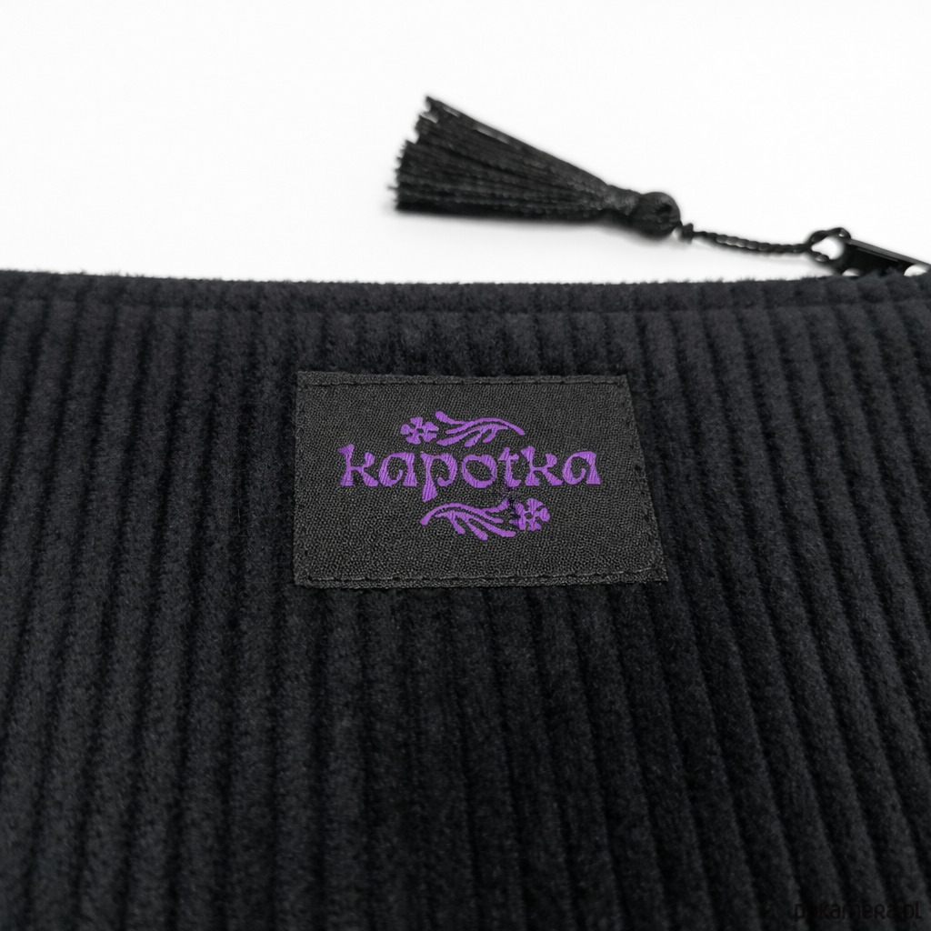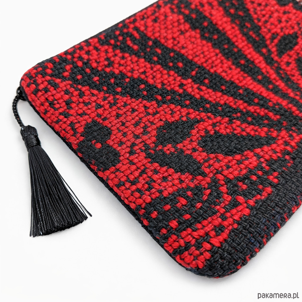 Wyjątkowa kosmetyczka handmade, uszyta w duchu upcyclingu z wysokiej jakości tkanin z drugiego obiegu. Przód wykonany jest z oryginalnej, wzorzystej tkaniny z okresu PRL-u. Tył kosmetyczki uszyty został z trwałego bawełnianego sztruksu w kolorze czarnym. Kosmetyczka zapinana jest na solidny, metalowy zamek firmy YKK, gwarantujący długotrwałe użytkowanie. Wnętrze zostało starannie wykończone bawełnianą podszewką, dzięki czemu całość prezentuje się estetycznie i elegancko. Przy suwaku znajduje się dekoracyjny chwost.