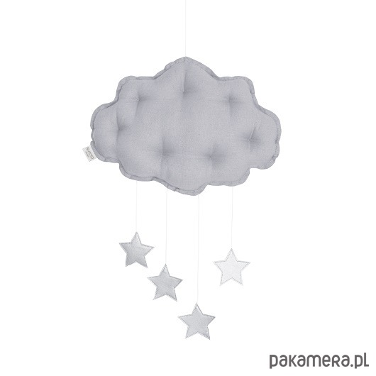 Mobil chmurka z lnu ze srebrnymi metalicznymi gwiazdkami doda uroku każdemu wnętrzu. Znajdzie swoje miejsce pod baldachimem, nad łóżeczkiem lub ozdobi ścianę pokoiku dziecka. Jest to niezwykły element dekoracyjny, który dopełni aranżację pokoiku malucha i rozbudzi jego wyobraźnie.