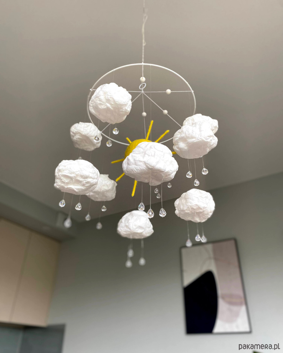 Mobil chmurki i słońce z kropelkami deszczu • Karuzela montessori nad łóżeczko i dekoracja pokoju dziecka