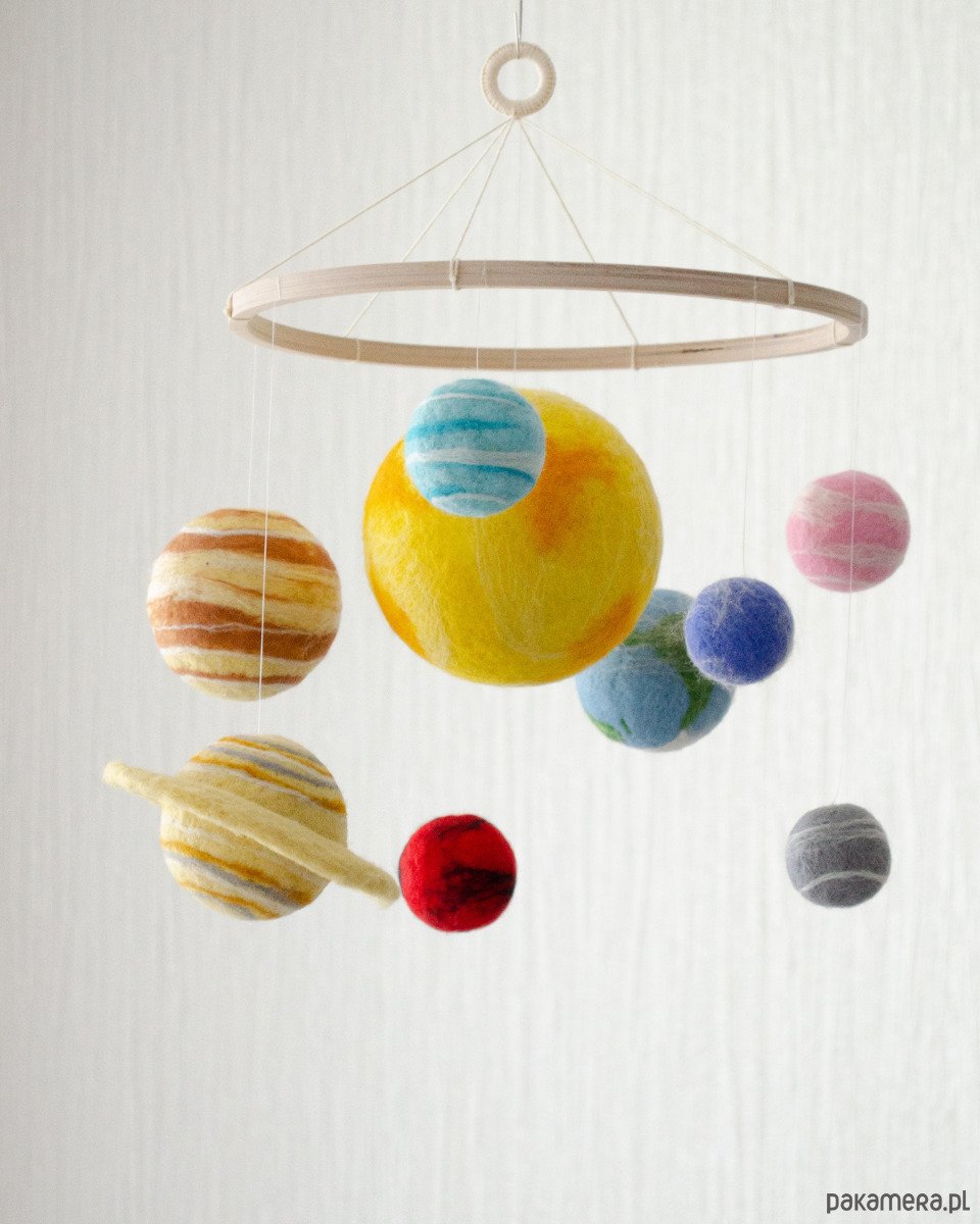 Mobil kosmiczny z planetami układu słonecznego • Karuzela montessori nad łóżeczko i dekoracja pokoju dziecka