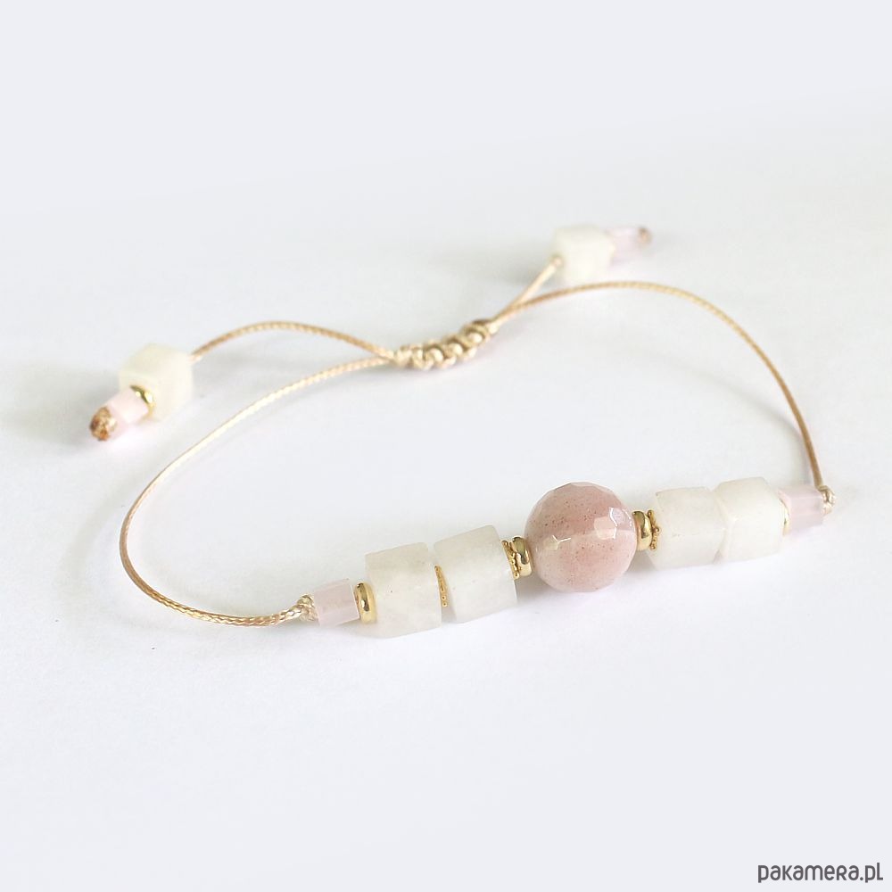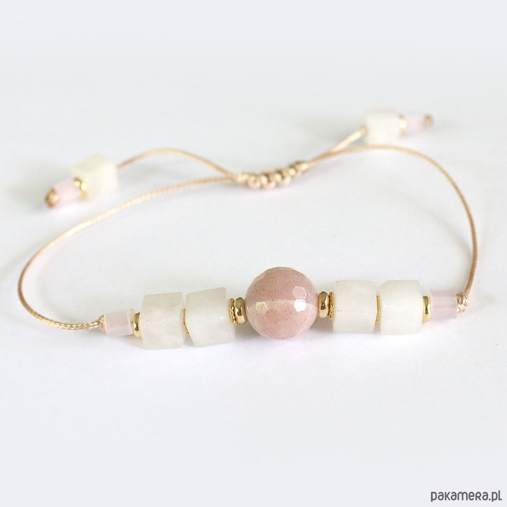 Elegancka energetyczna bransoletka wykonana techniką shamballa z kamieniem słonecznym, kalcytem, fasetowanymi kryształkami AB i przekładkami pozłacanymi 24k złotem. Wspierająca uzdrawianie życiowej energii - twórczej i seksualnej.