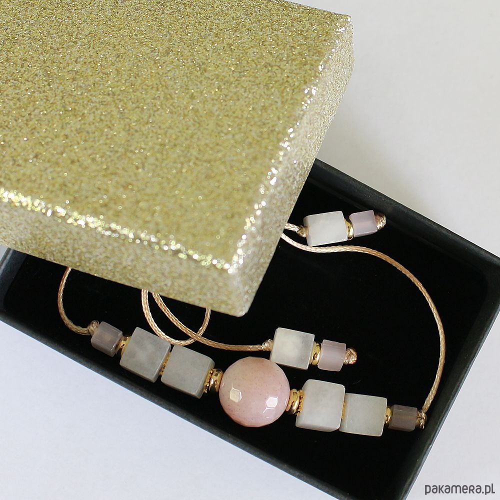Rodzaj produktu: bransoletka shamballa z regulacją na woskowanym złotym sznurku