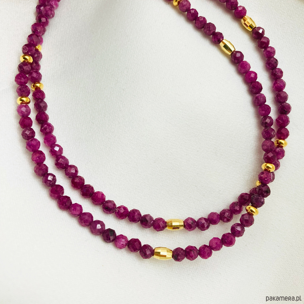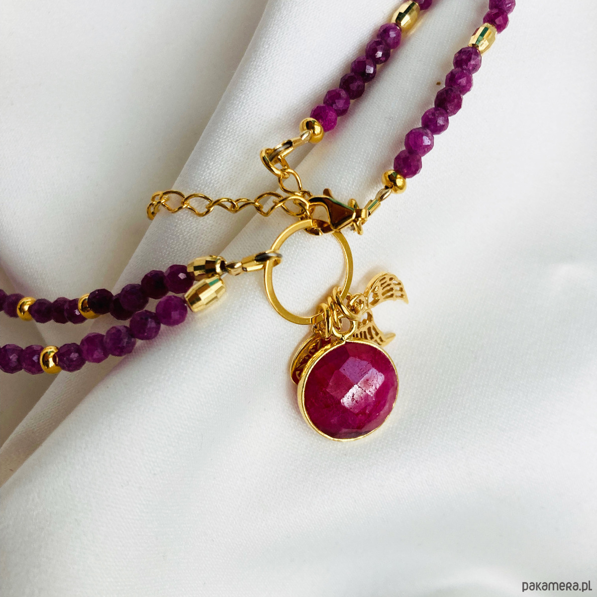 Ta wyjątkowa ozdoba, wykonana z fasetowanych korali rubinowych oraz elementów pozłacanych 24-karatowym złotem, emanuje subtelnym blaskiem i niepowtarzalnym charakterem. Idealna dla kobiety, która kocha elegancję z odrobiną boho.