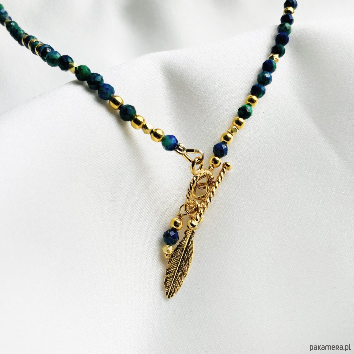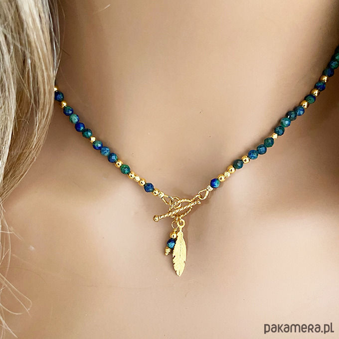MOC SZAMANKI- Krótki Naszyjnik AZURYT, złote piórko