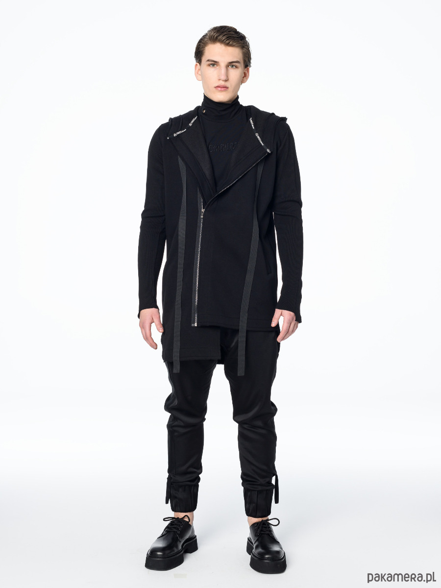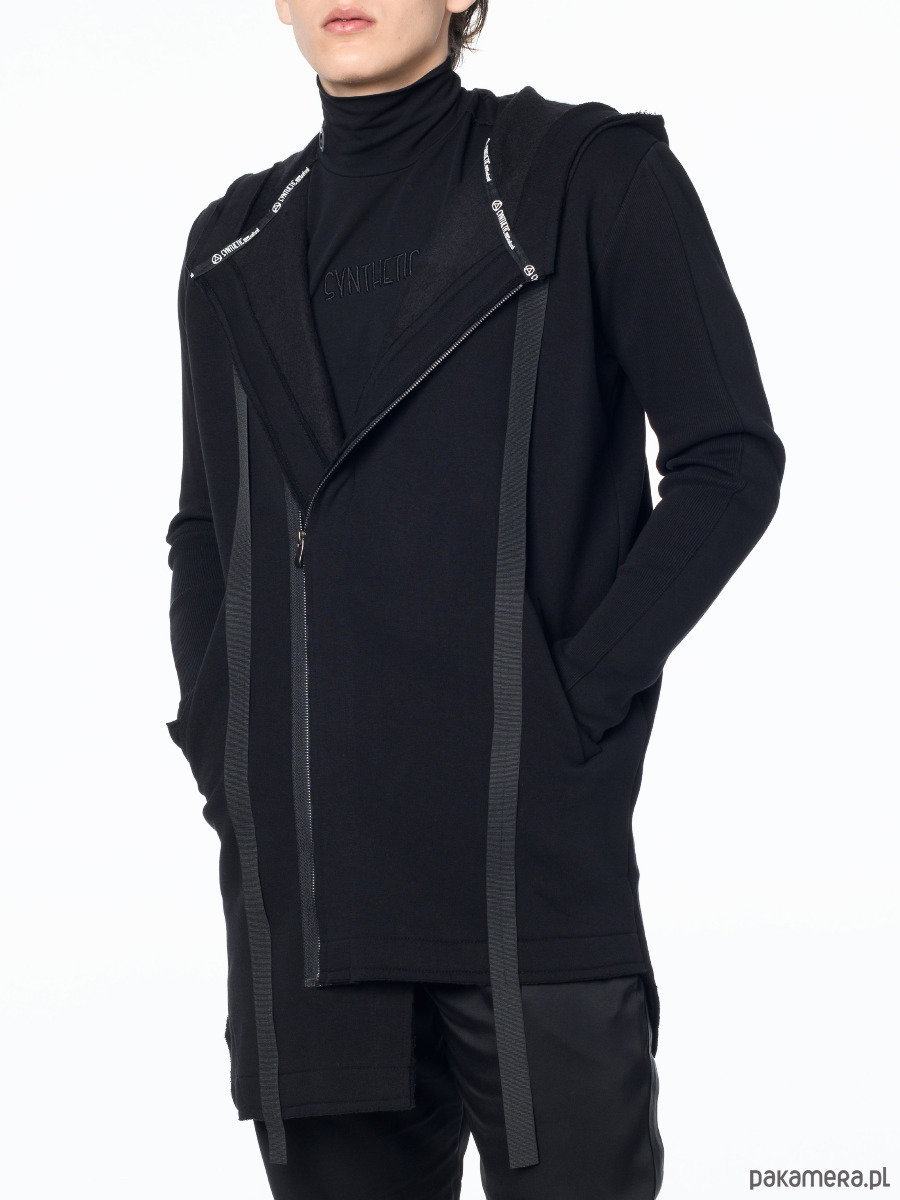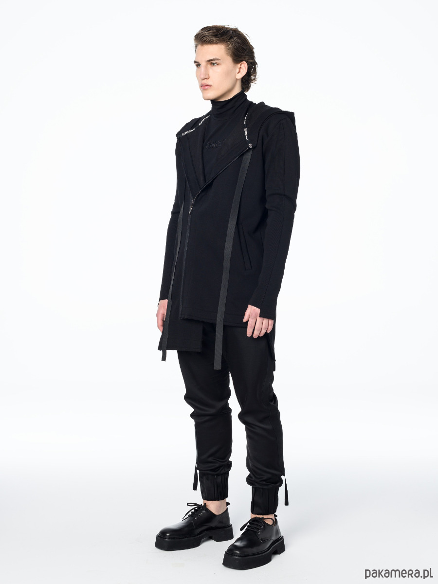 – Bluza zapinana na ukos na metalowy zamek w kolorze ciemnego grafitu