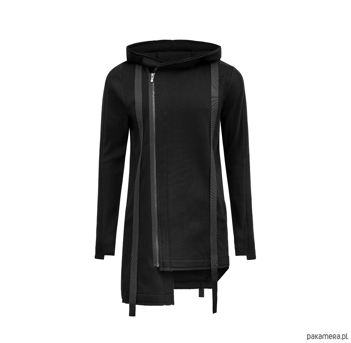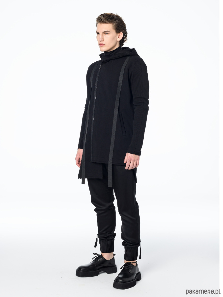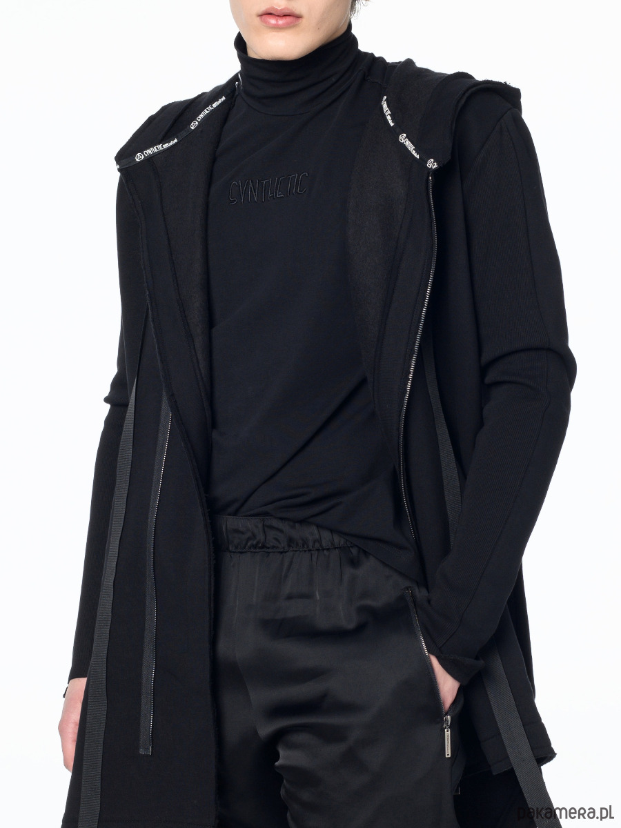 – Bluza zapinana na ukos na metalowy zamek w kolorze ciemnego grafitu