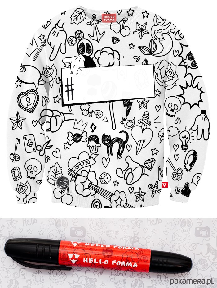 BLUZA #HASHTAG COMISC Określ w jakiej jesteś formie Pokaż swoje emocje ! Kreuj swoje hashtagi ! Bluza + marker Hello Forma Co to jest ? Najnowsza kolekcja HELLO FORMA , to linia trzech modeli bluz dostępnych w różnych wersjach kolorystycznych. Każda bluza z kolekcji SOCIAL MEDIA inspirowanej popularnymi mediami społecznościowymi, ma specjalne miejsce po którym możesz pisać. Do każdej bluzy dołączony jest specjalny, zmywalny marker Hello Forma. Jak to działa ? Kolekcja SOCIAL MEDIA ułatwia wyrażenie siebie. Nawiązywanie nowych kontaktów, zdobywanie obserwatorów, lajków, promowanie nowej idei i wyrażaniu własnych emocji. Od dziś rzeczywistość kreuje Hello Forma - marker ! Dla kogo ? Każdy z nas jest inny, każdy z nas ma do przekazania światu coś ważnego. Dzięki bluzom inspirowanej życiem na portalach społecznościowym, każdy ma szansę pokazać to kim jest naprawdę, wysłać w świat swój własny komunikat, pozostając przy tym w zgodzie z najnowszymi trendami. W każdej chwili można zaprezentować światu coś nowego. Wystarczy zastosować przepis prania dołączony do bluz. Jakość Bluzy SOCIAL MEDIA wykonane są z wysokogatunkowej mieszanki bawełny i poliestru. Marka dokłada wszelkich starań aby modny design szedł w parze z jakością i trwałością.