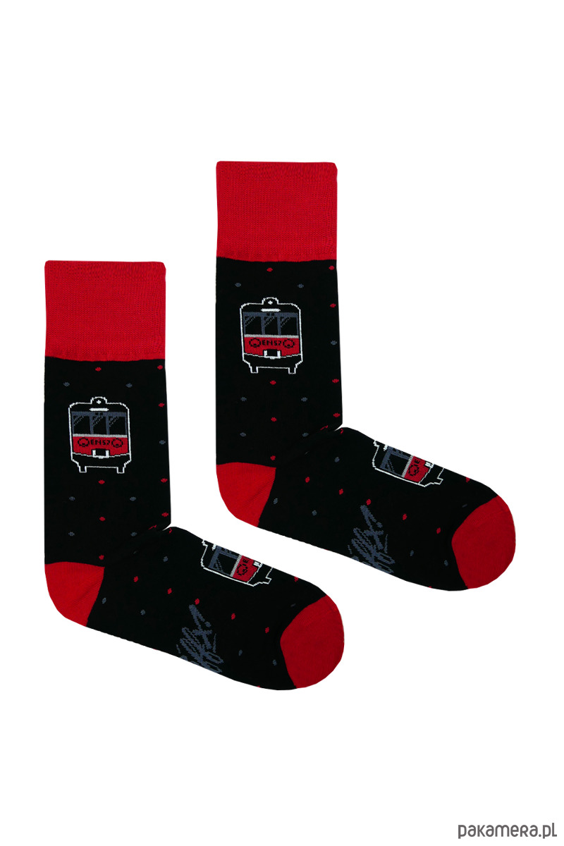Skarpetki TRAFFX z frontem kultowej podmiejskiej kolejki EN57.