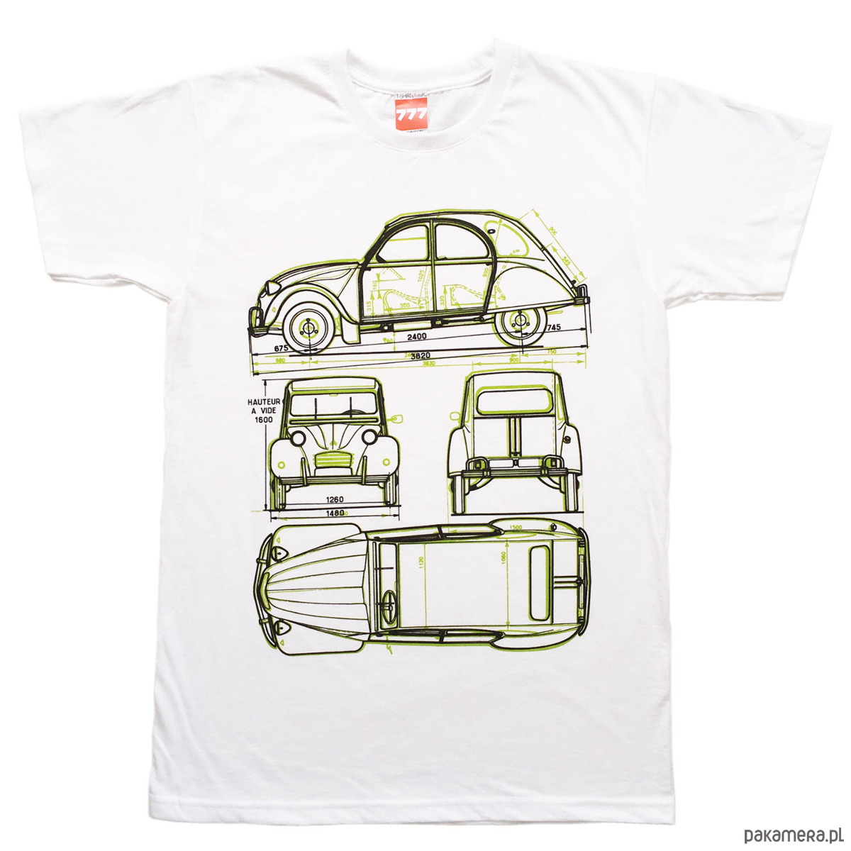 Citroen 2 CV - tak brzydki, że aż piękny. Mimo, że zaprojektowany w duchu skrajnie minimalistycznym (cztery koła z parasolem), zastosowano w nim wiele ciekawych i niecodziennych rozwiązań. Co w sumie nie powinno dziwić, bo to samochód francuski.Delikatny w dotyku, trwały nadruk na białej koszulce 100% bawełny, gramatura 160 g. Projekt: 777.