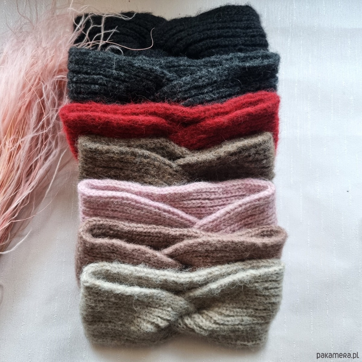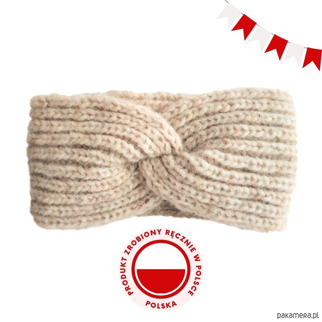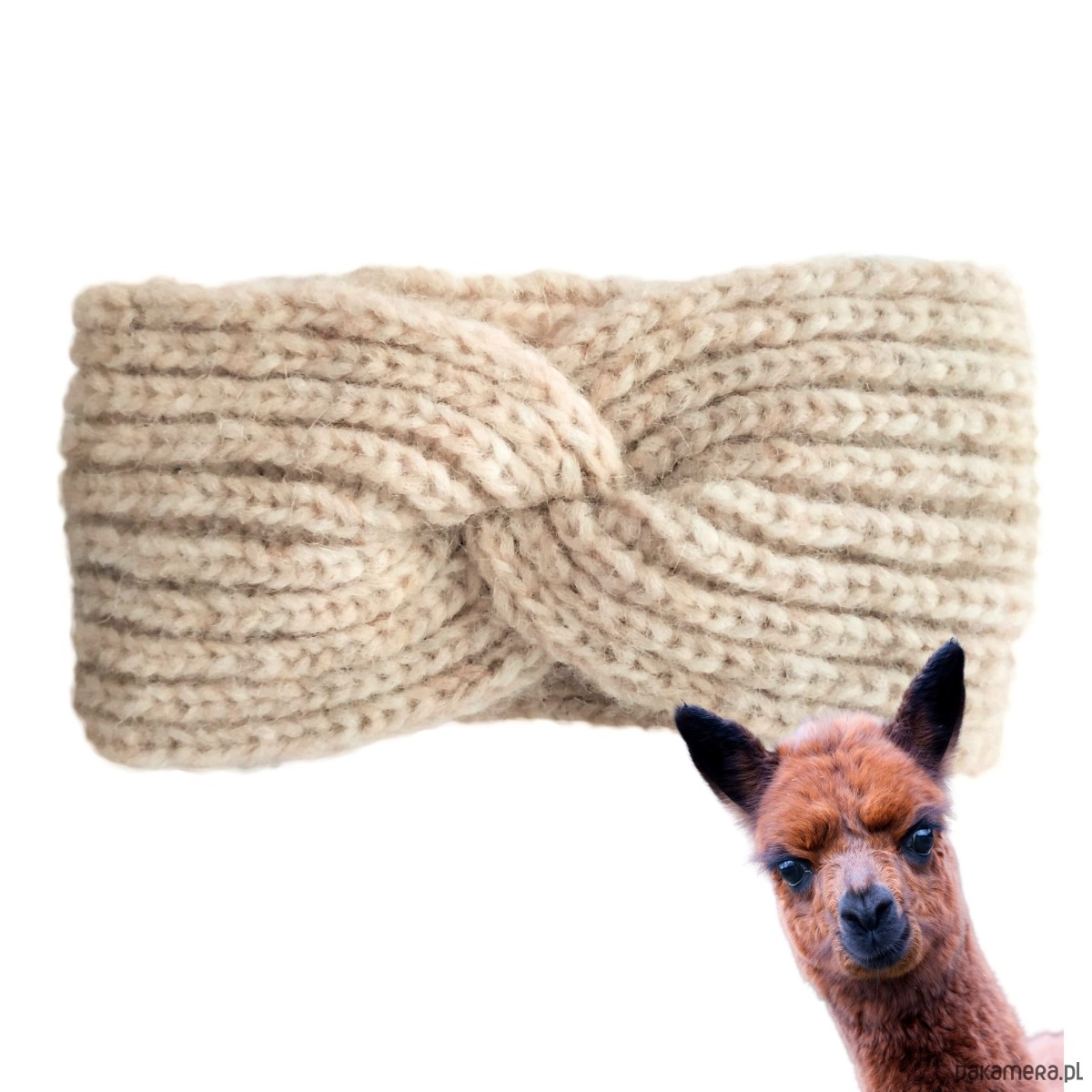 Wełniana opaska handmade z alpaki i merino, miękka, ciepła, beżowa