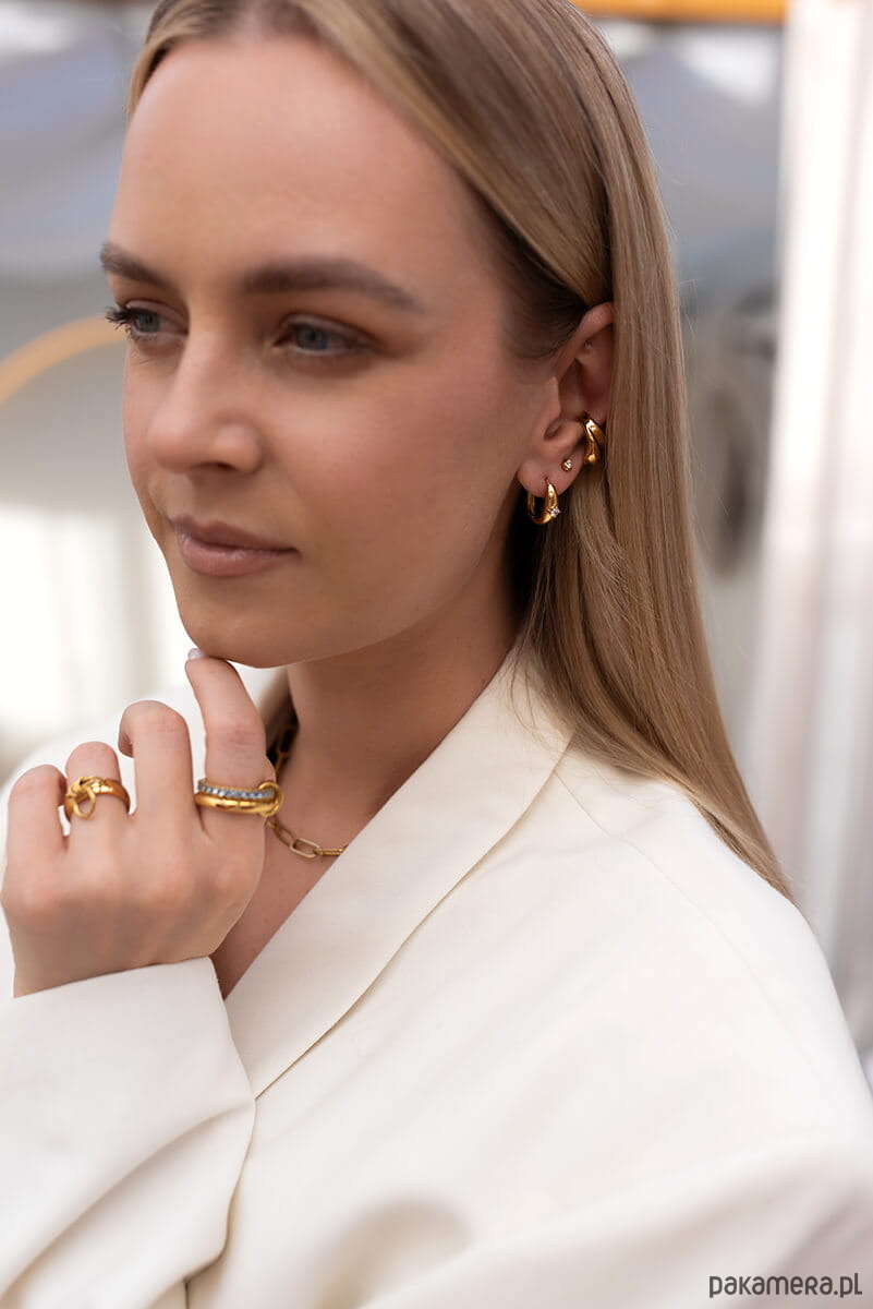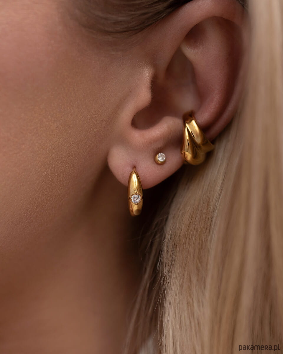 Szukasz kolczyków, które są minimalistyczne, ale przyciągają spojrzenia? Ten model to idealna równowaga między klasyką, a nowoczesną formą.Kolczyki te zostały wykonane z najwyższej jakości stali chirurgicznej pozłacanej, co oznacza, że możesz zapomnieć o ciemniejącej, uczulającej biżuterii. Ich ponadczasowy design opiera się na zaokrąglonym, grubym kole (średnica 1,6 cm, szerokość 0,5 cm), w którym centralne miejsce zajmuje błyszcząca cyrkonia - subtelna, ale efektowna.Dlaczego warto je mieć?- Wodoodporne i hipoalergiczne - idealne na każdą pogodę i dla każdej skóry- Zachwycają złotym blaskiem przez lata - nie ścierają się, nie matowieją- Ultralekkie (4 g) - idealne na cały dzień bez uczucia ciężkości- Zapięcie typu zatrzask - szybkie i wygodne w codziennym użytkowaniu- Stal chirurgiczna zamiast srebra - bezpieczna, trwała, lepsza w codziennym użytkowaniuTo idealna propozycja dla kobiet, które:- mają dość biżuterii, która uczula lub ciemnieje po kilku użyciach- cenią modne złote kolczyki na co dzień i do pracy- szukają trwałego dodatku na lata- chcą prezentować się stylowo w każdej sytuacji