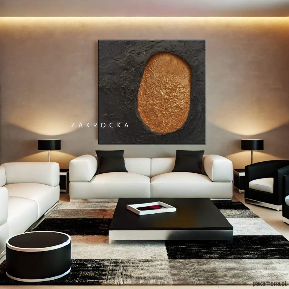 Modny obraz strukturalny KIRKE czerń i ciemne złoto