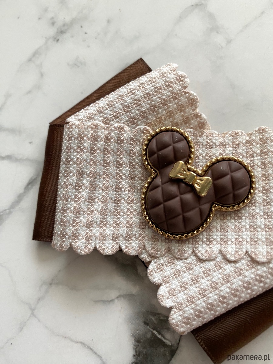 Broszka wykonana z wysokiej jakości taśm i dodatków.