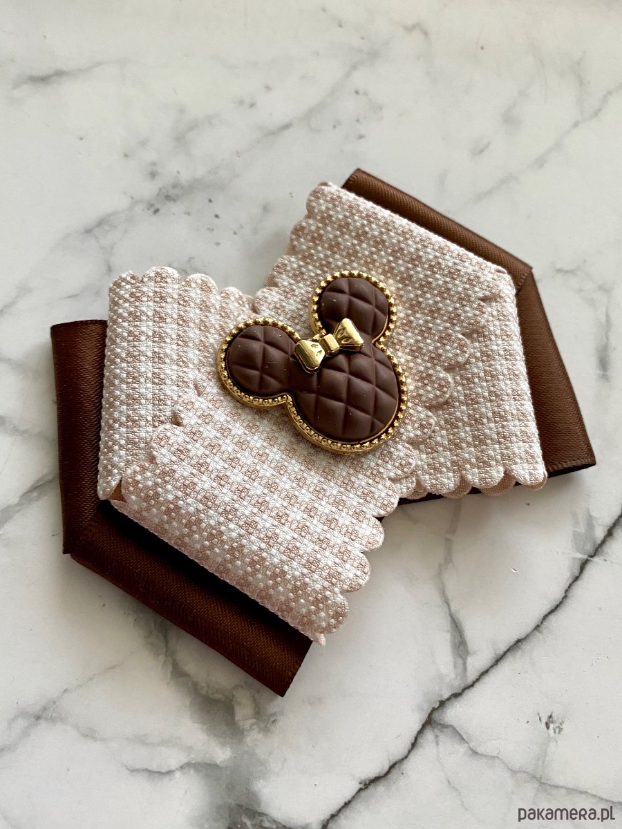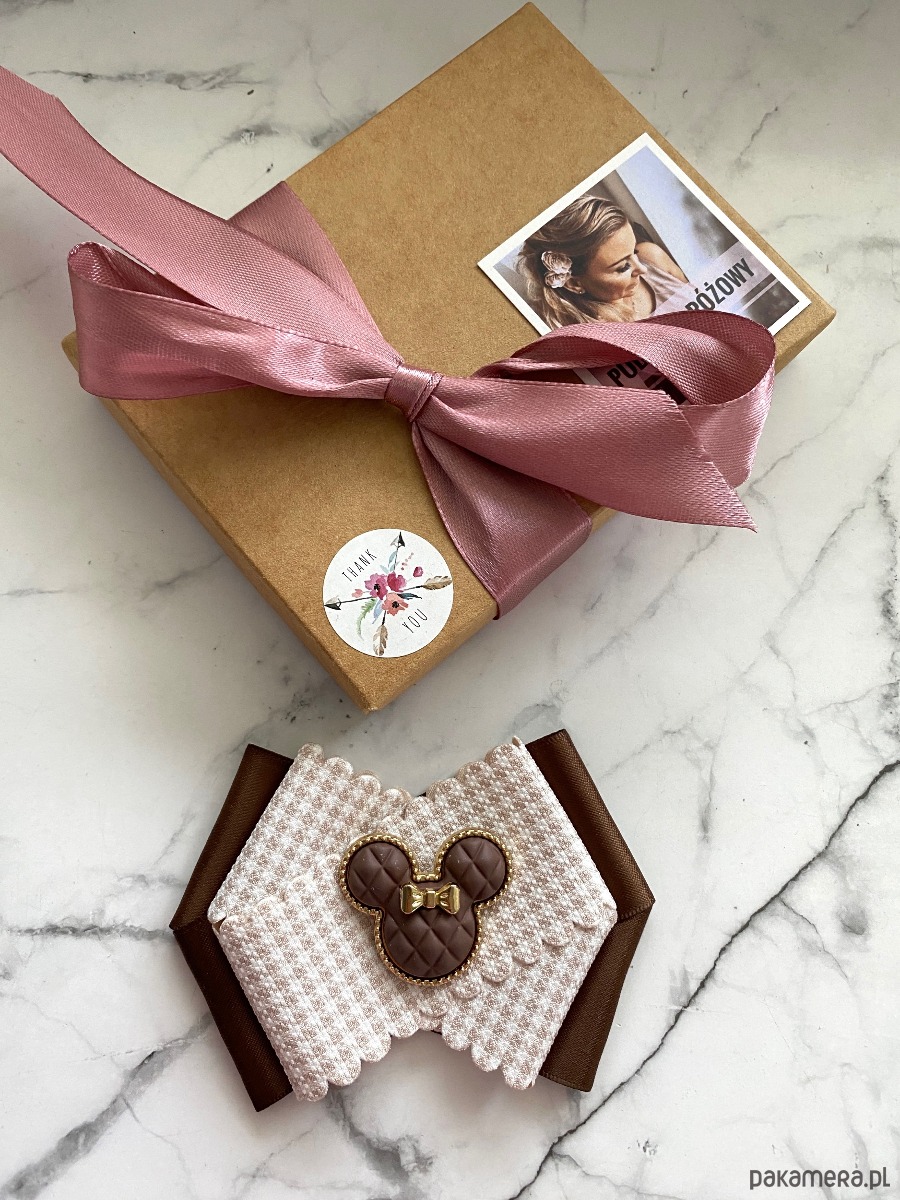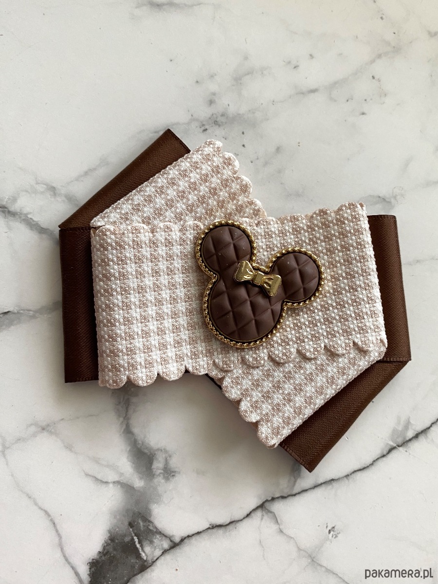 Broszka wykonana z wysokiej jakości taśm i dodatków.