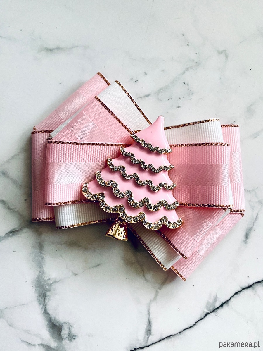 Modowa Brosza z Choinką Pudrowy róż Mikołajki Święta