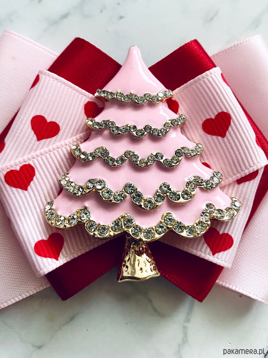 Modowa Brosza z Choinką Pudrowy róż Mikołajki Święta