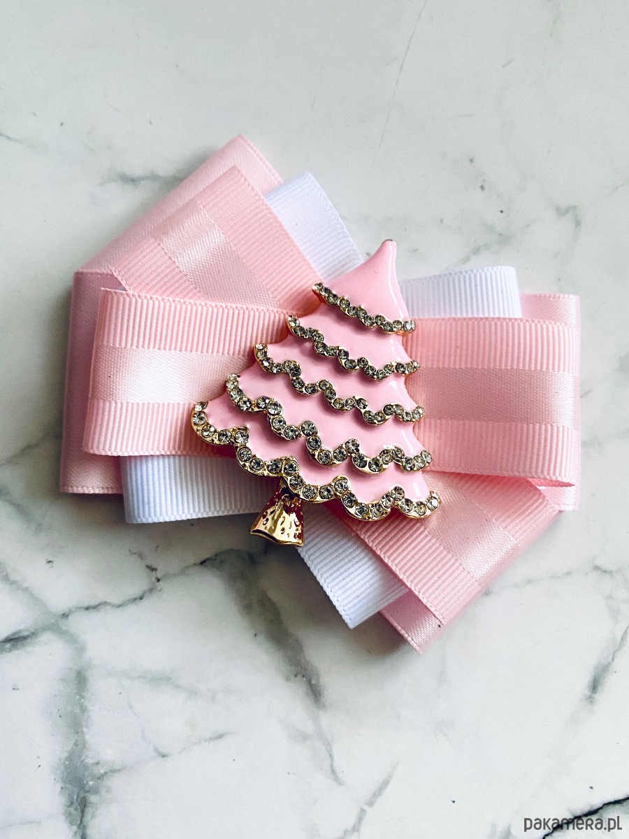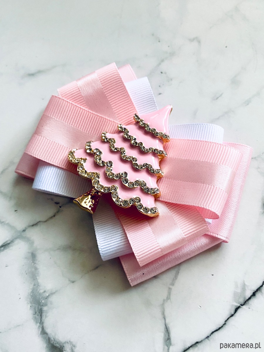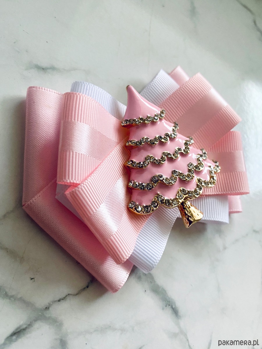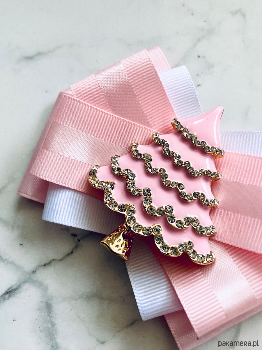 Modowa Brosza z Choinką Pudrowy róż Mikołajki Święta