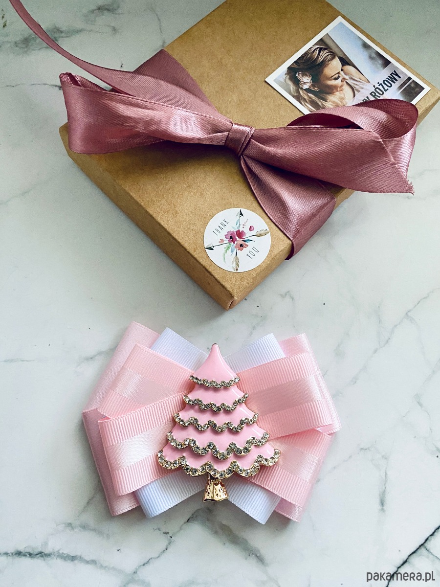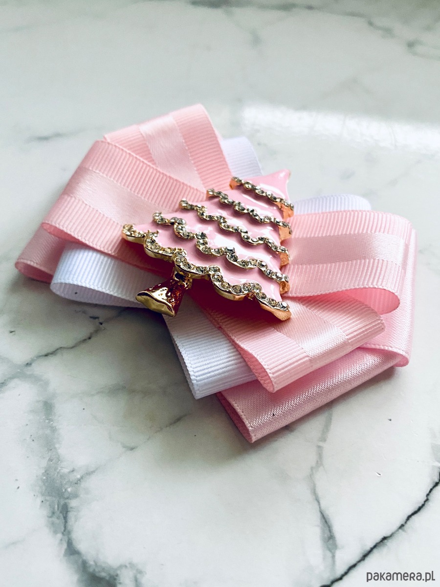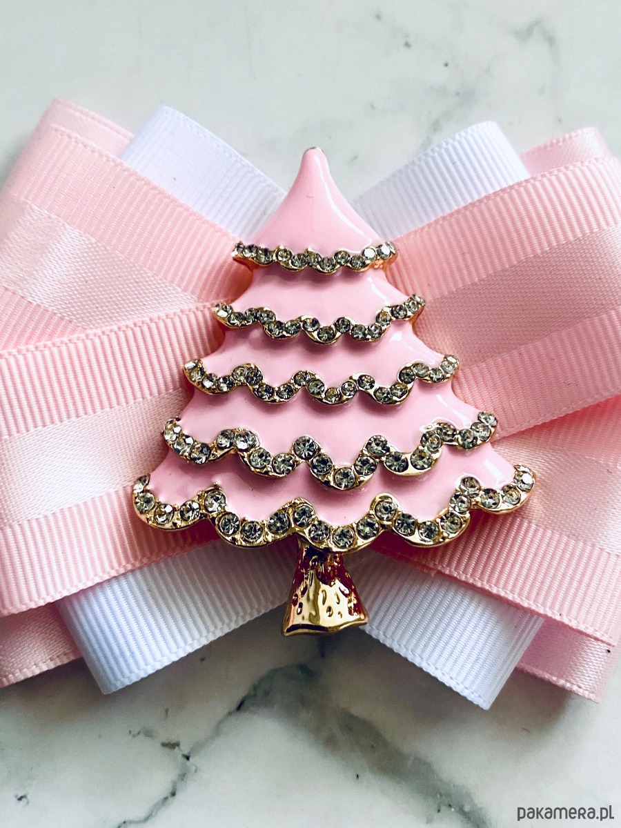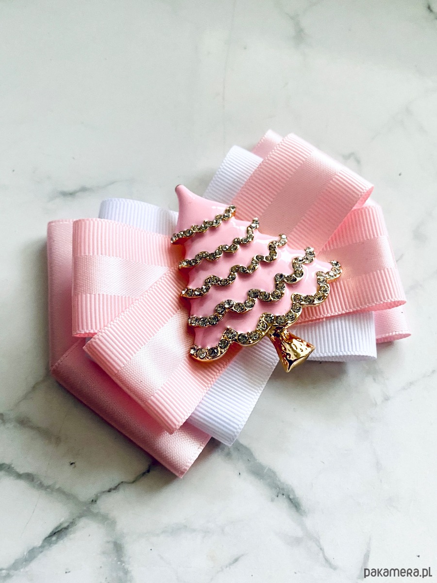 Modowa Brosza z Choinką Pudrowy róż Mikołajki Święta