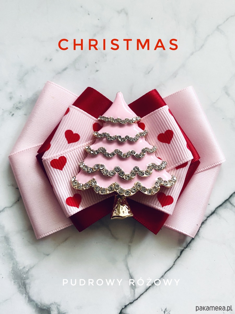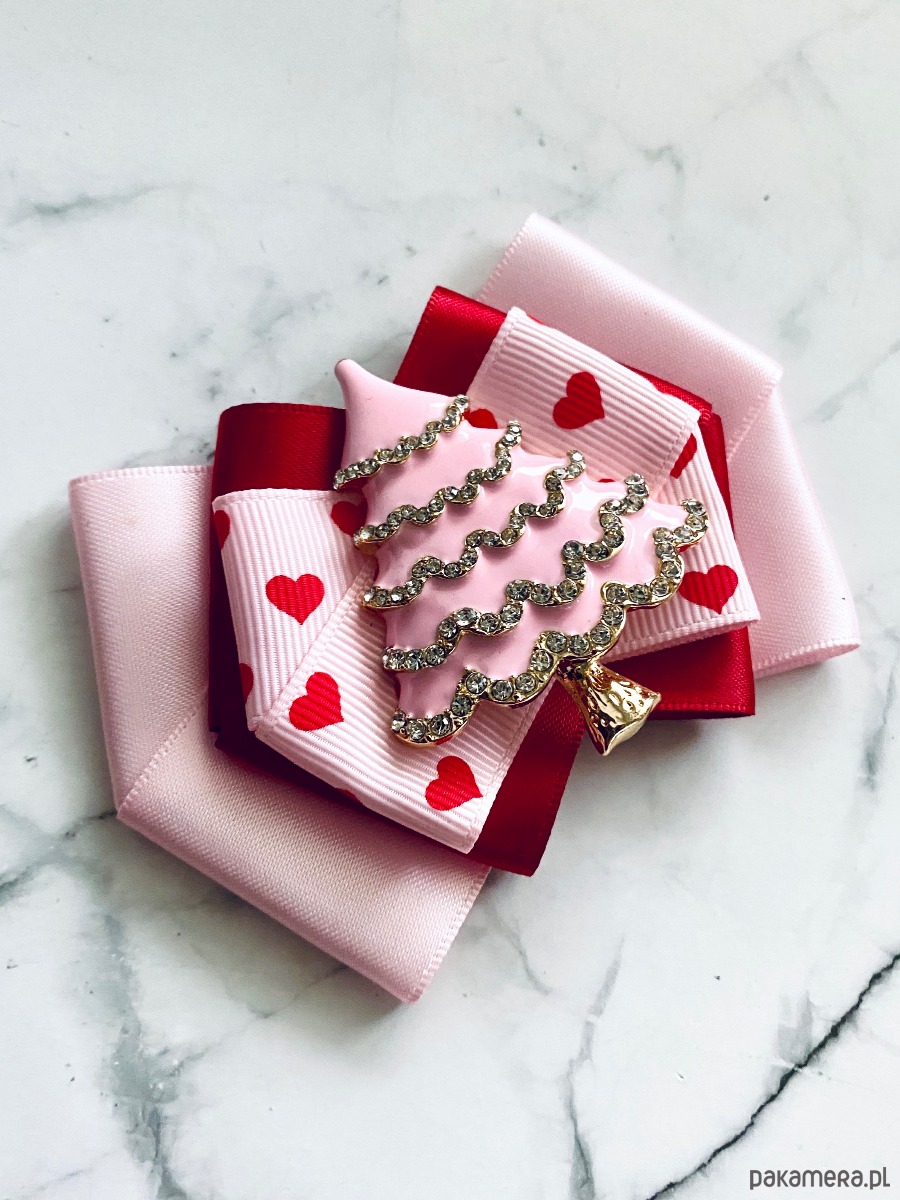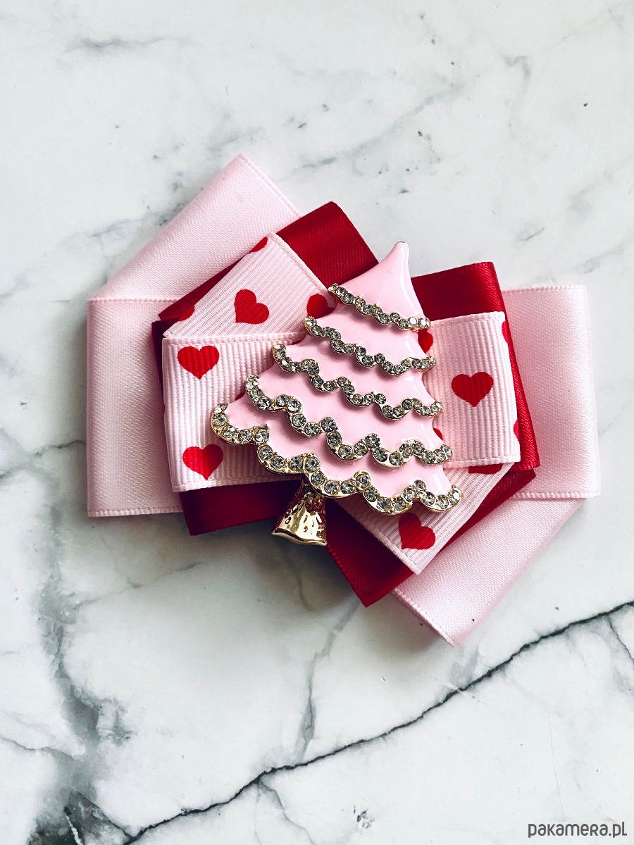 Modowa Brosza z Choinką Pudrowy róż Mikołajki Święta