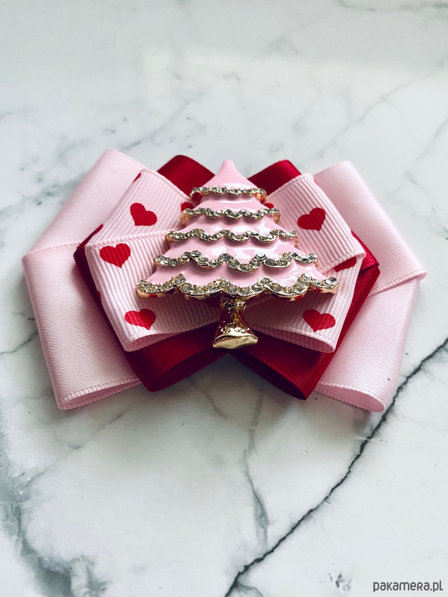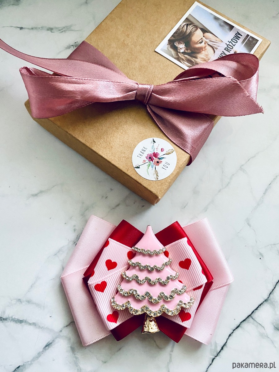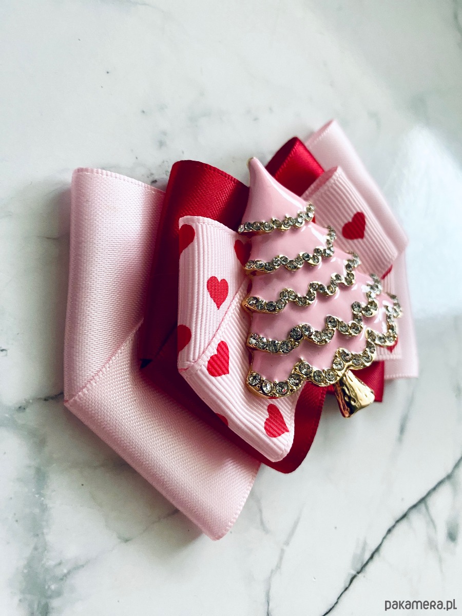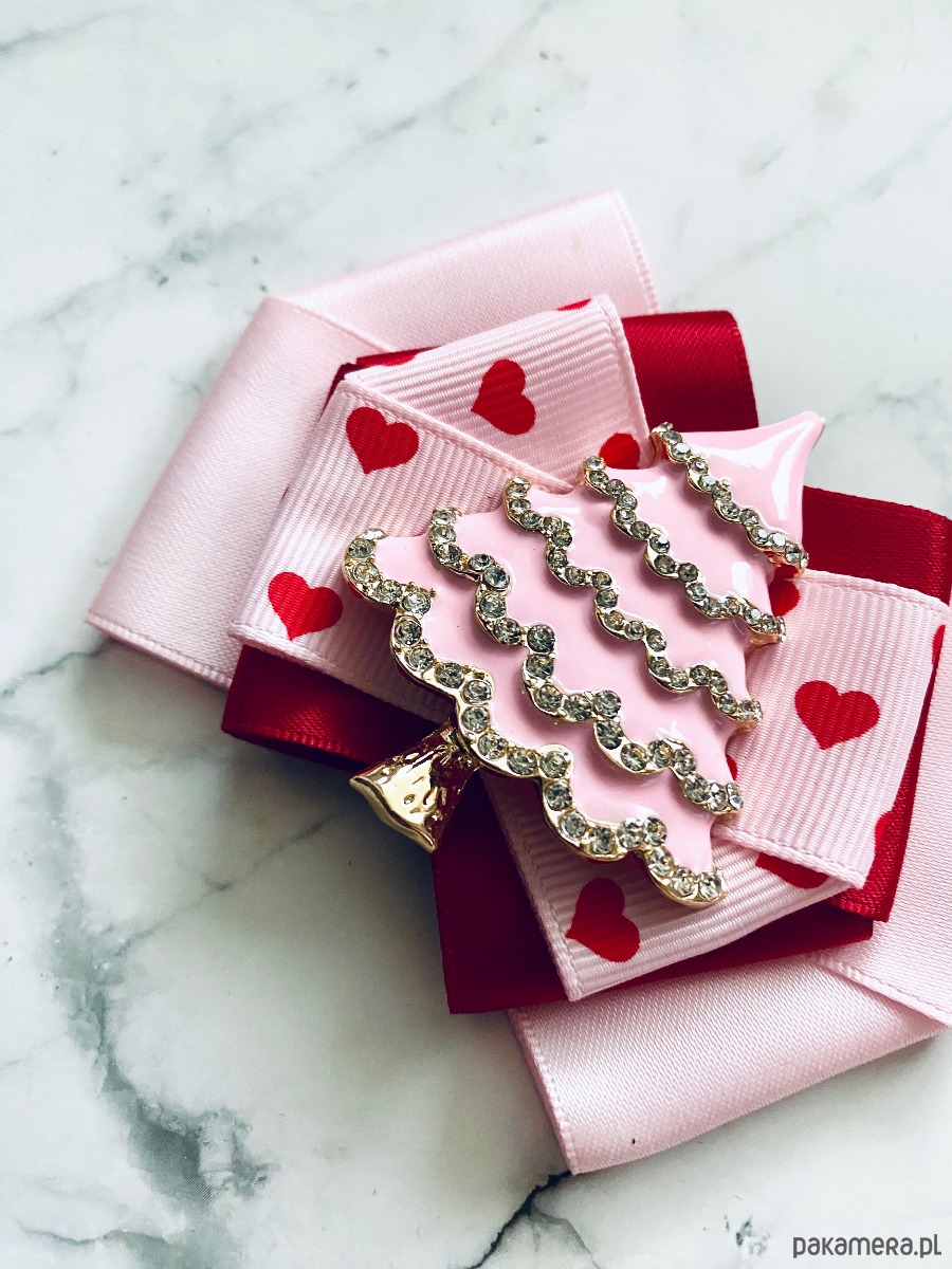 Modowa Brosza z Choinką Pudrowy róż Mikołajki Święta