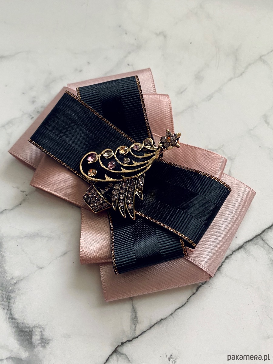 Broszka wykonana z wysokiej jakości taśm i dodatków.