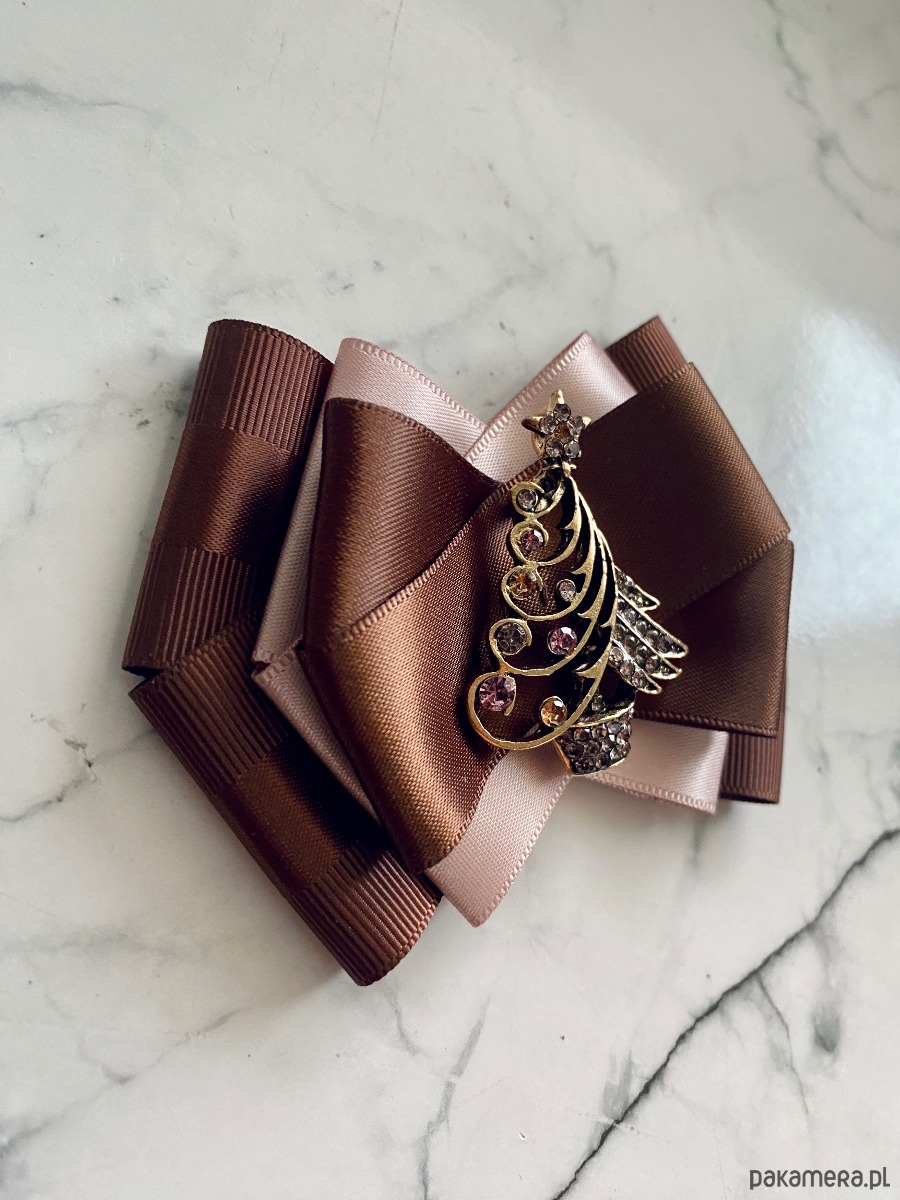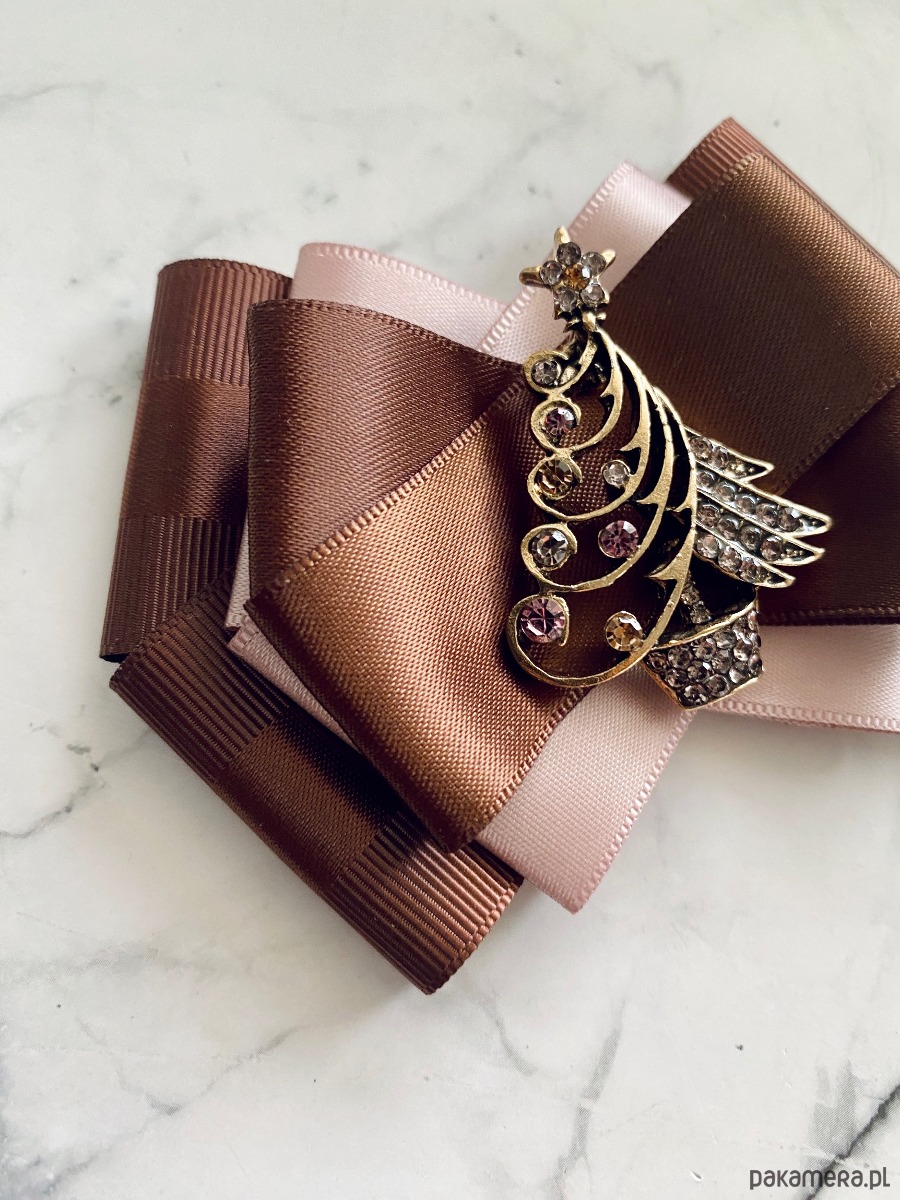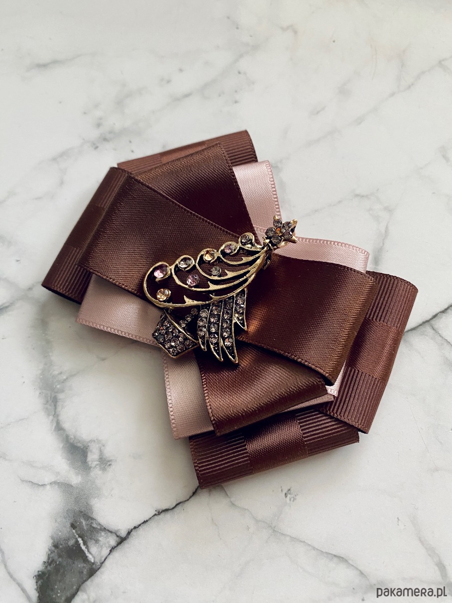 Broszka wykonana z wysokiej jakości taśm i dodatków.
