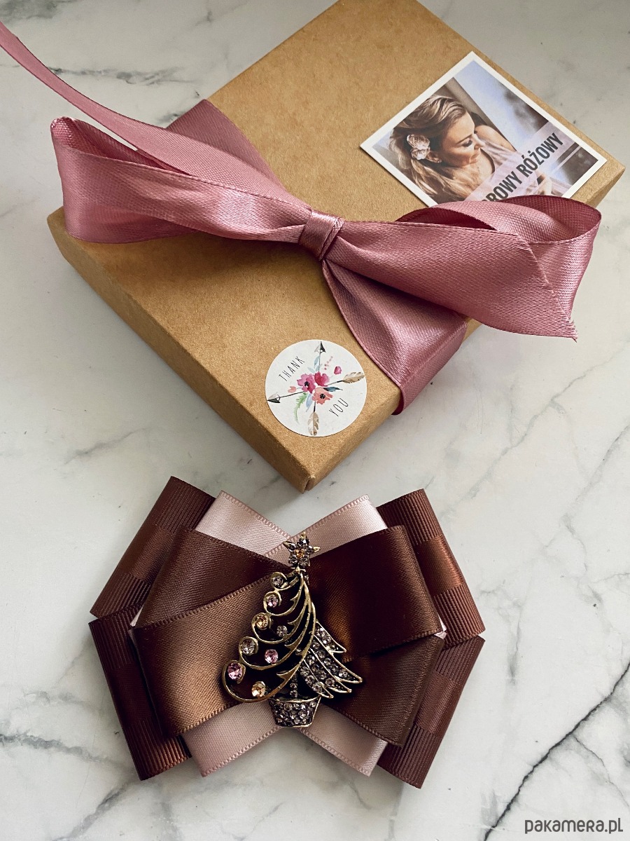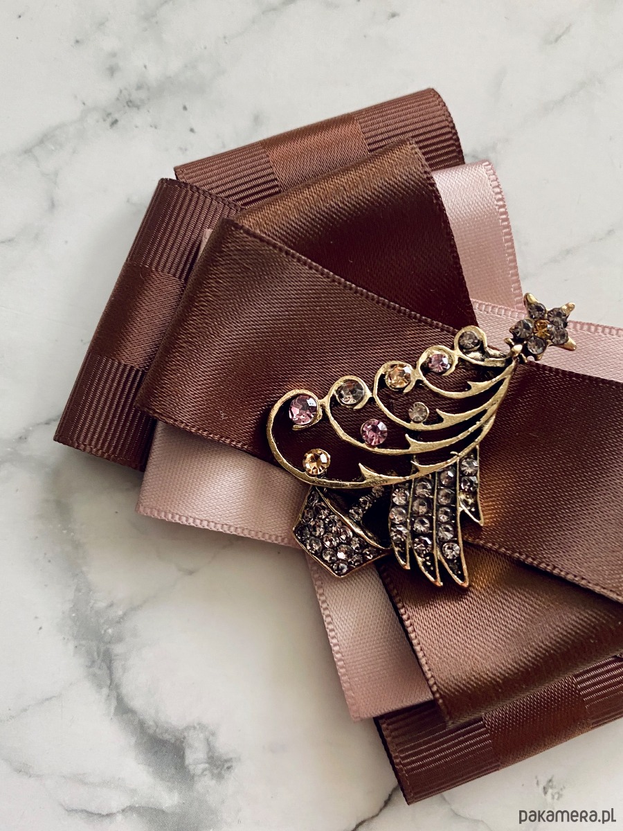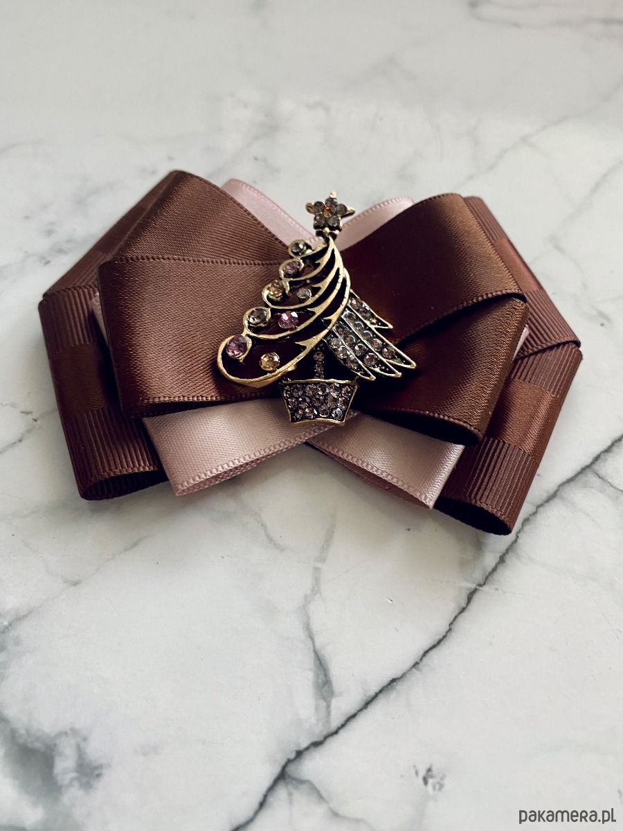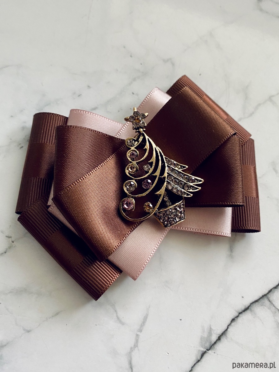 Broszka wykonana z wysokiej jakości taśm i dodatków.