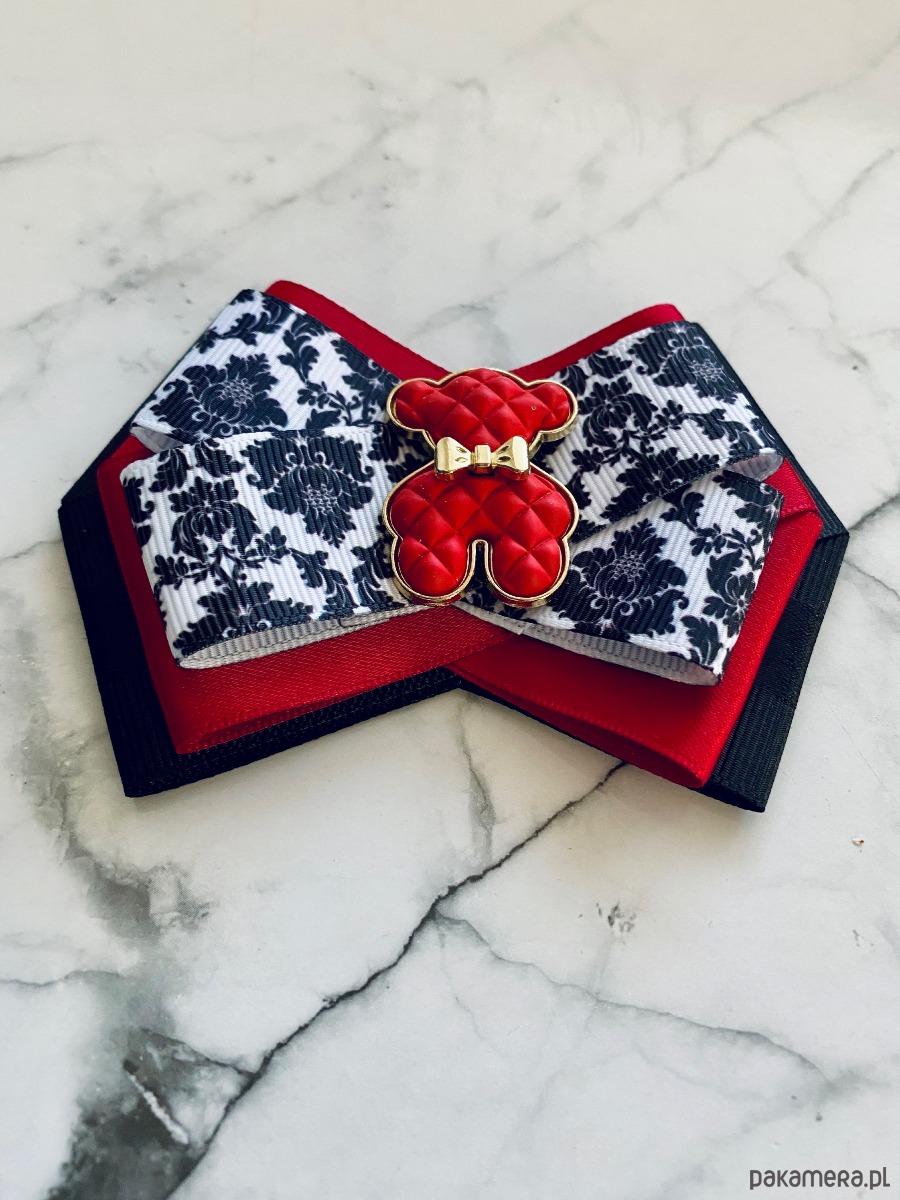 Broszka wykonana z wysokiej jakości taśm i dodatków.