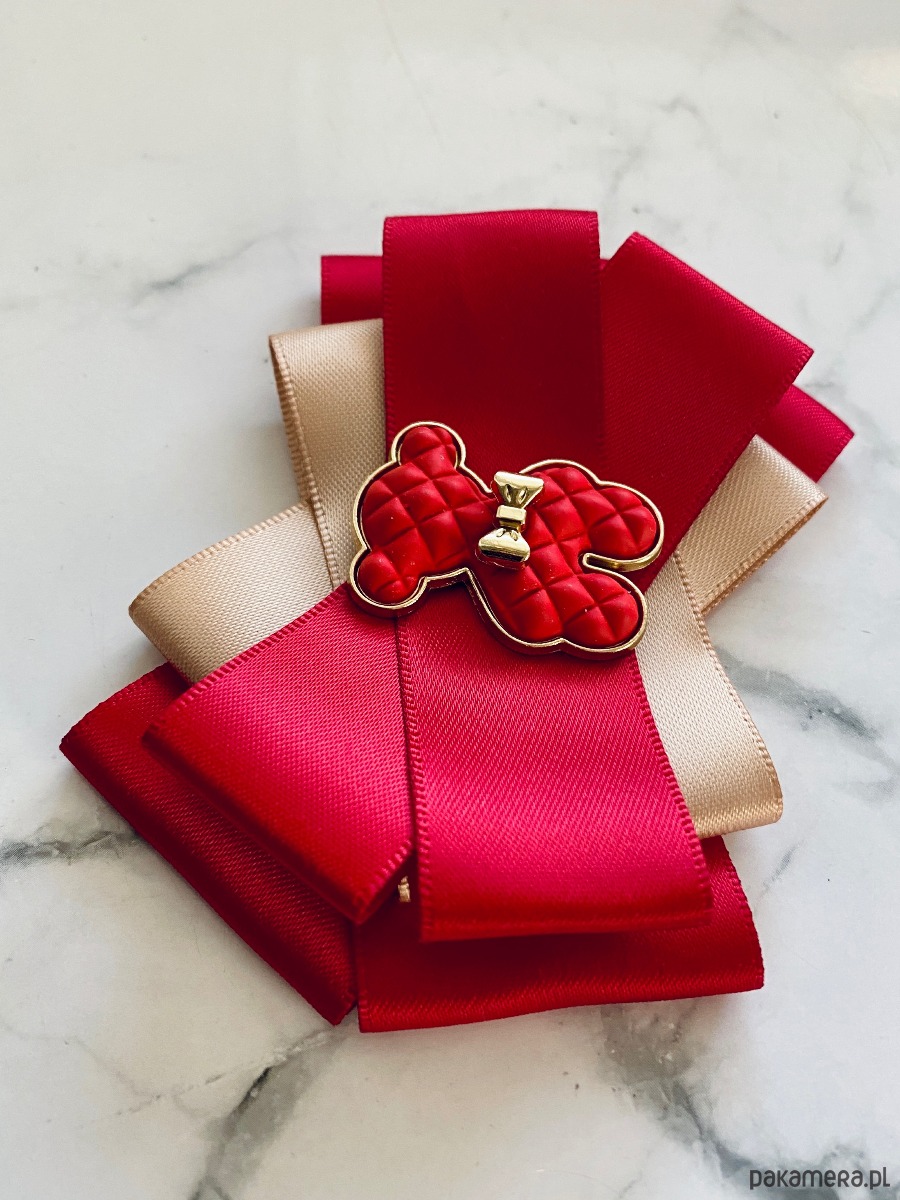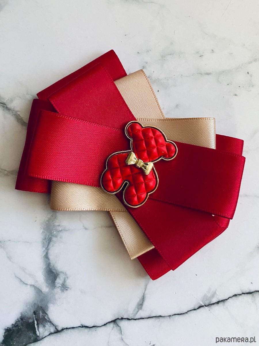 Broszka wykonana z wysokiej jakości taśm i dodatków.