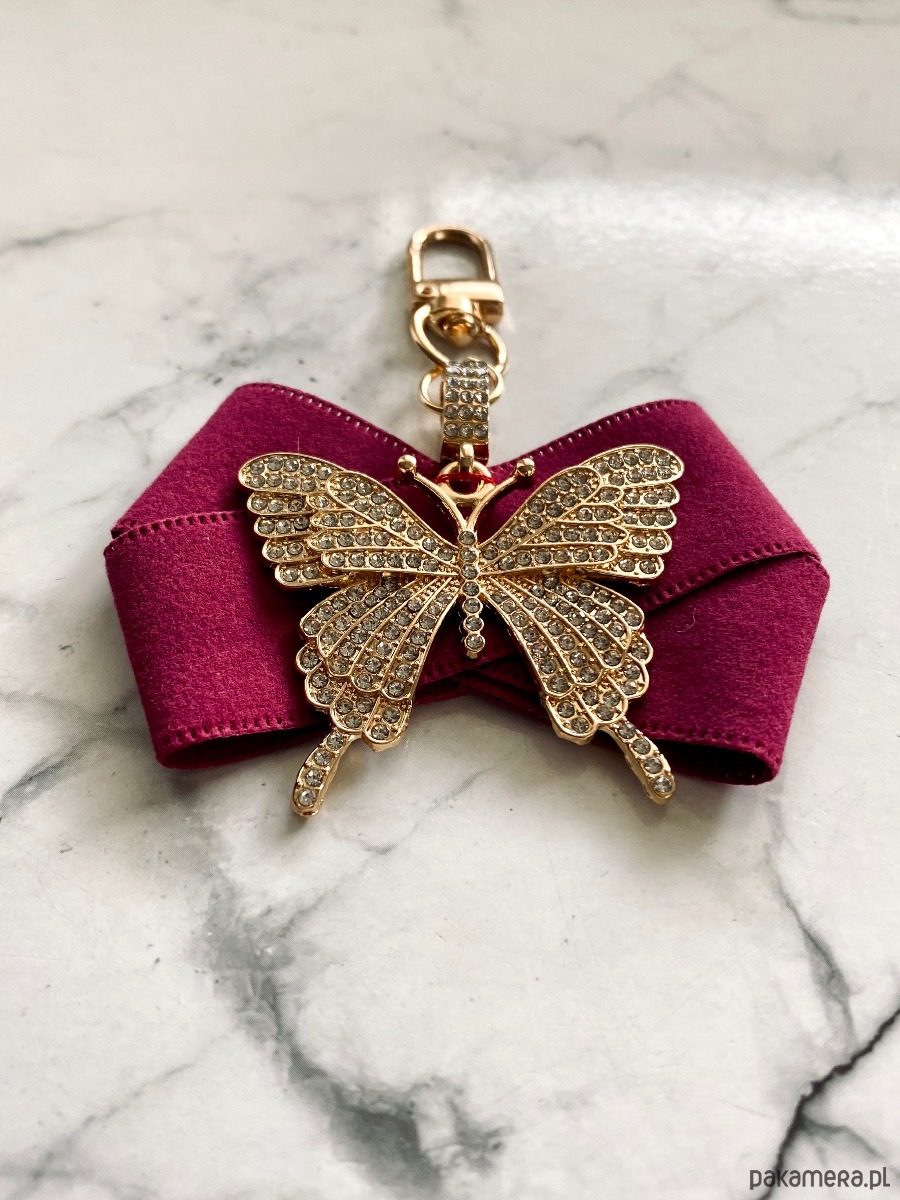 Brelok wykonany z przepięknego elementu biżuteryjnego okazałego motyla wysadzanego drobnymi kryształkami.