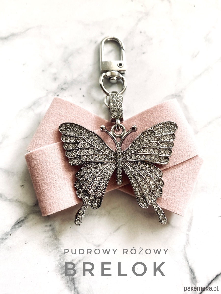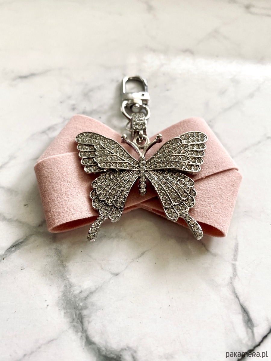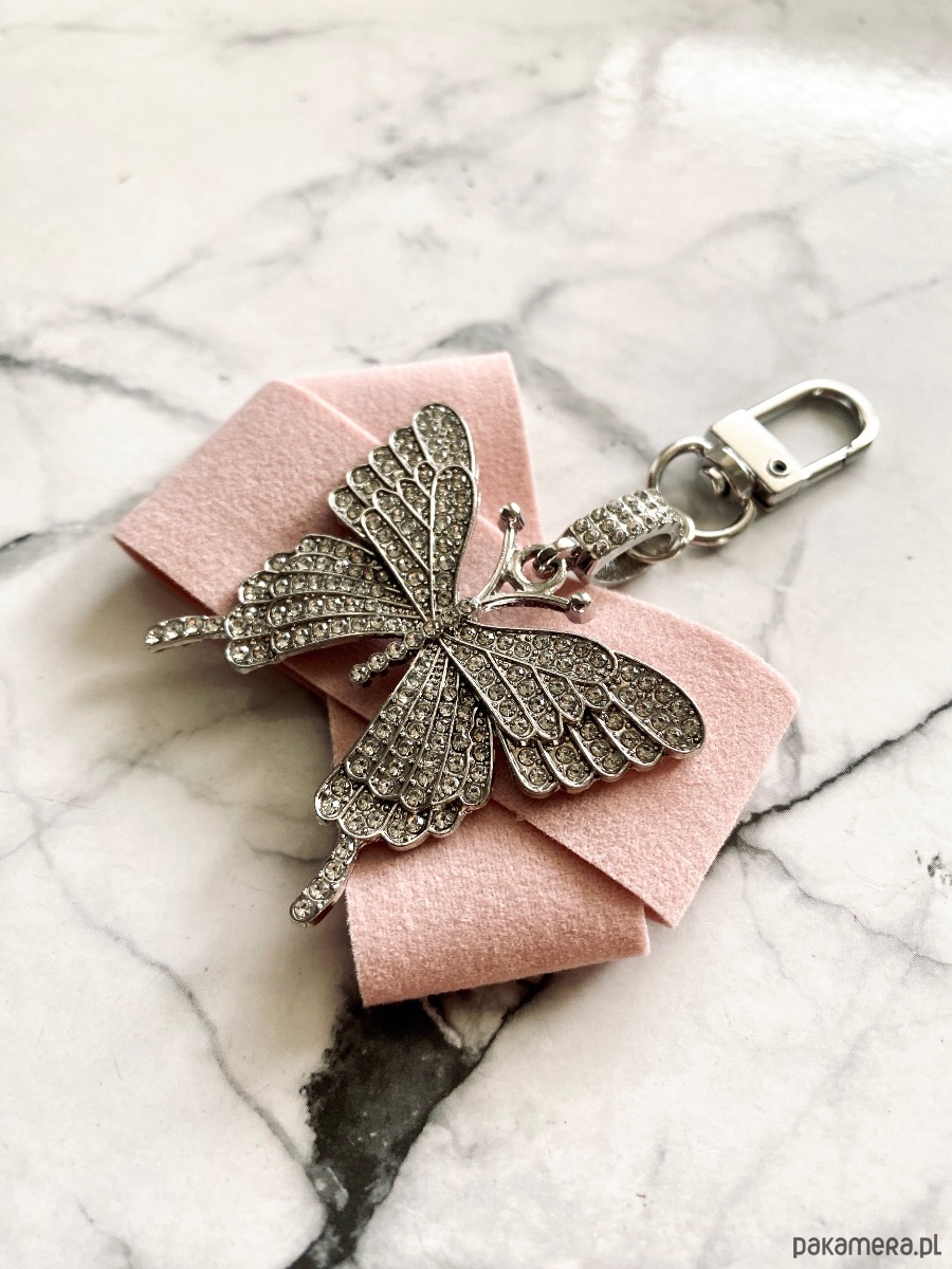 Brelok wykonany z przepięknego elementu biżuteryjnego okazałego motyla wysadzanego drobnymi kryształkami.