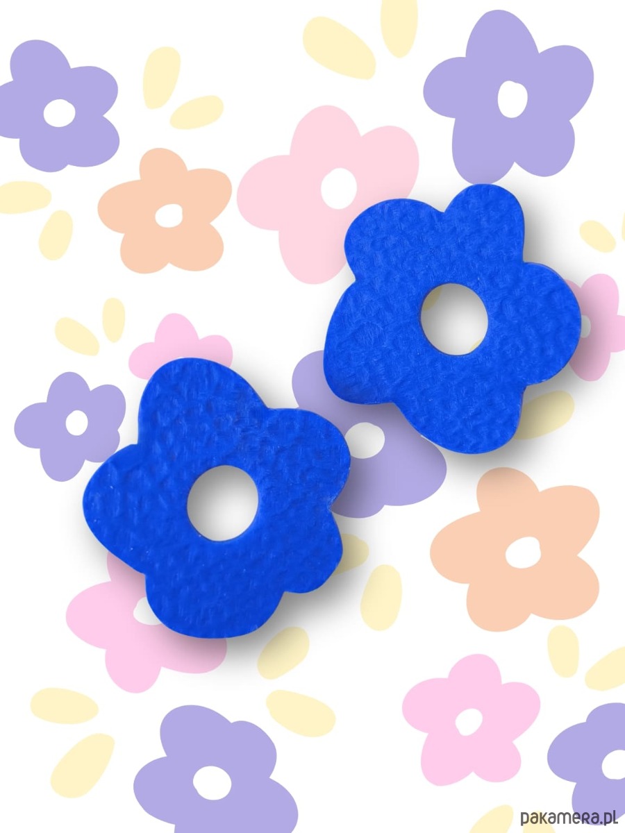 Kolczyki sztyfty KWIATY w pięknym, wyrazistym i optymistycznym kolorze modrakowym kobaltowym