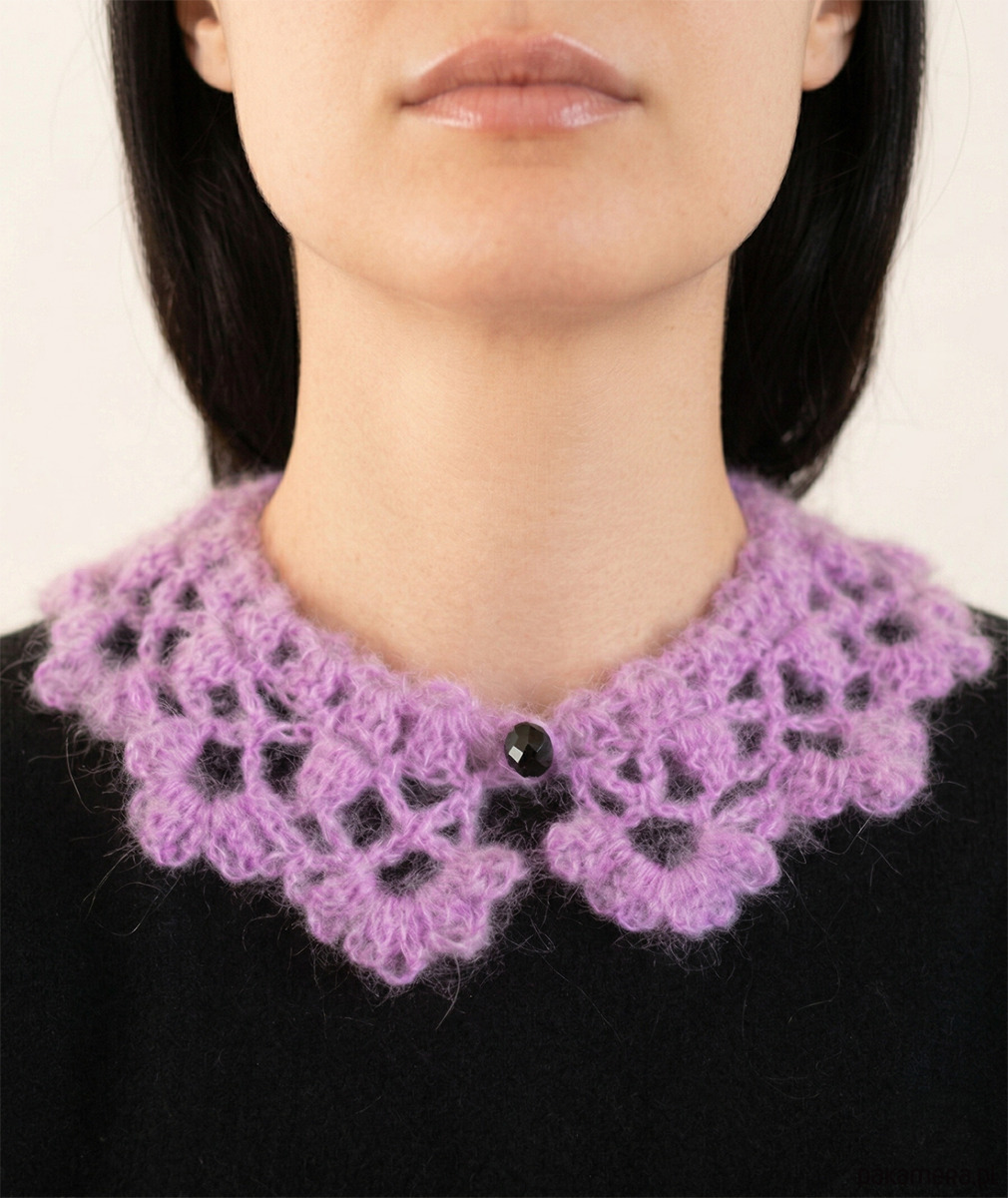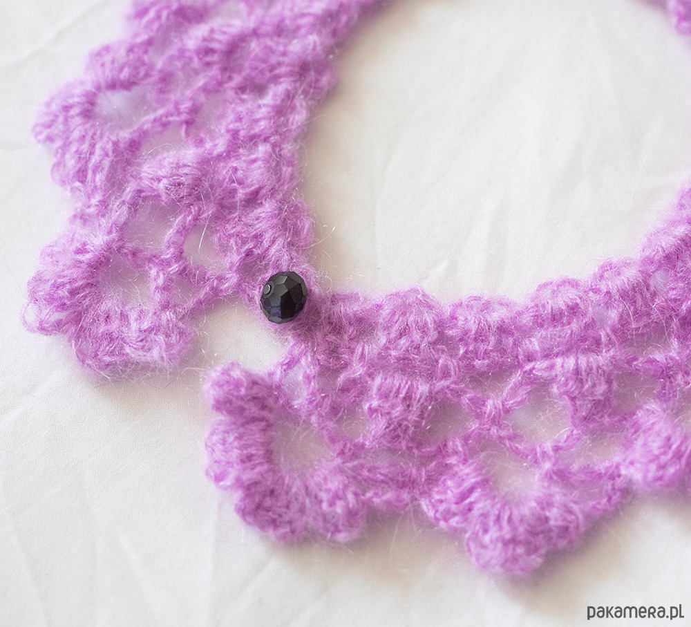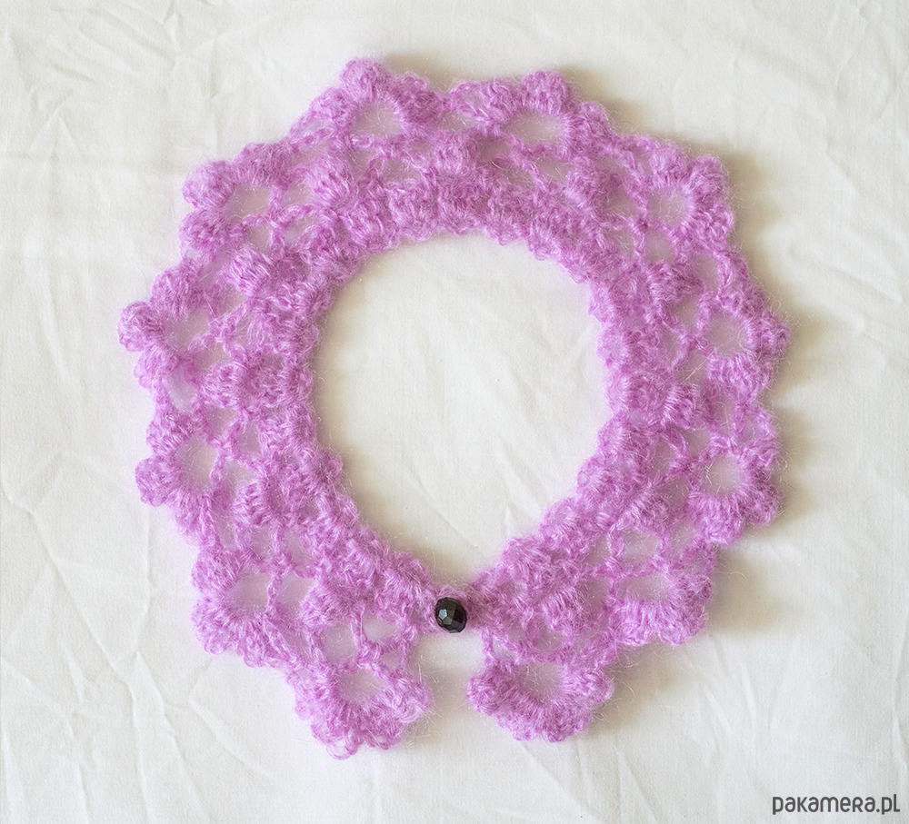 Wykonany ręcznie na szydełku, ma w sobie coś z babcinych kołnierzyków - romantyczny, lekko vintage, ale łatwy do noszenia na co dzień.
