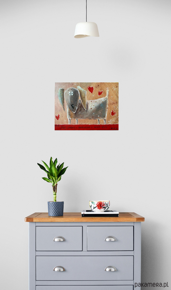 Mój piesek - serduszko u moich stóp. Giclee
