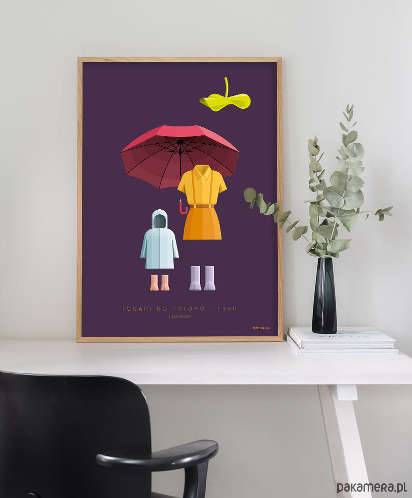 Plakat inspirowany filmem animowanym Mój Sąsiad Totoro (Tonari no Totoro), Hayao Miyazakiego. Grafika przedstawia kostiumy głównych postaci tej wspaniałej opowieści: sióstr Mei i Satsuki oraz duszka Totoro. Plakat wspaniale sprawdzi się jako prezent dla najbliższych - niezależnie od wieku.