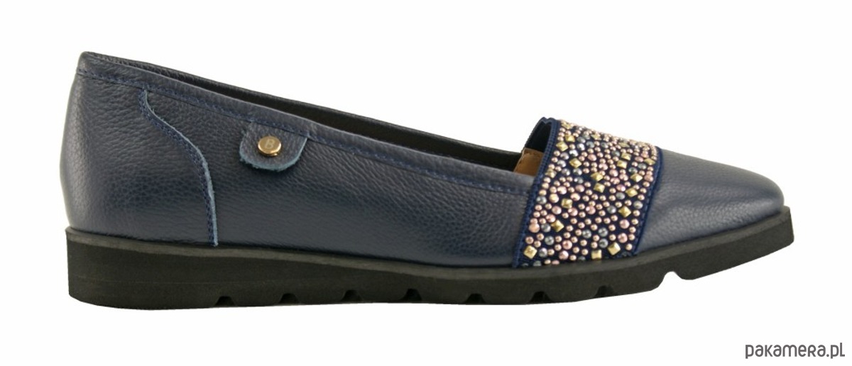 Mokasyny Skórzane wszyta gumka z ozdobnymi dżetami (4455)