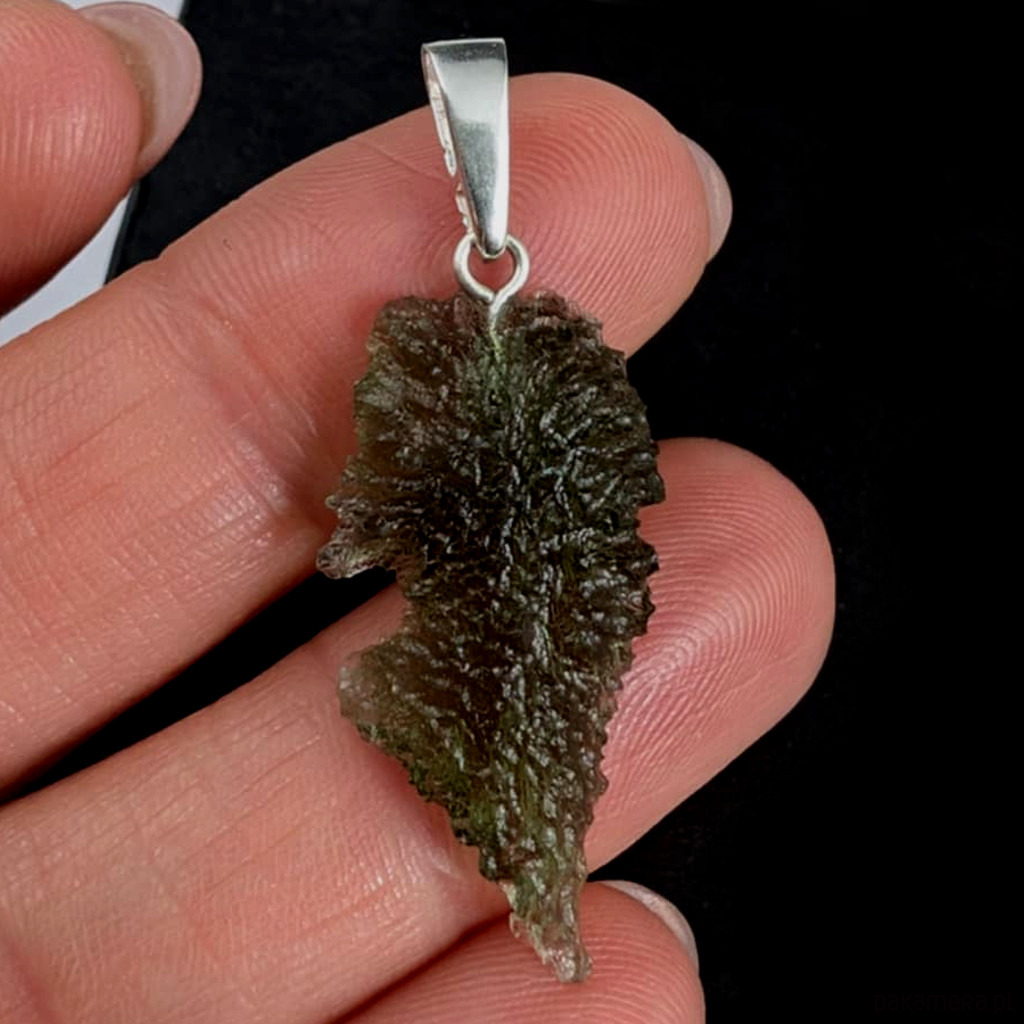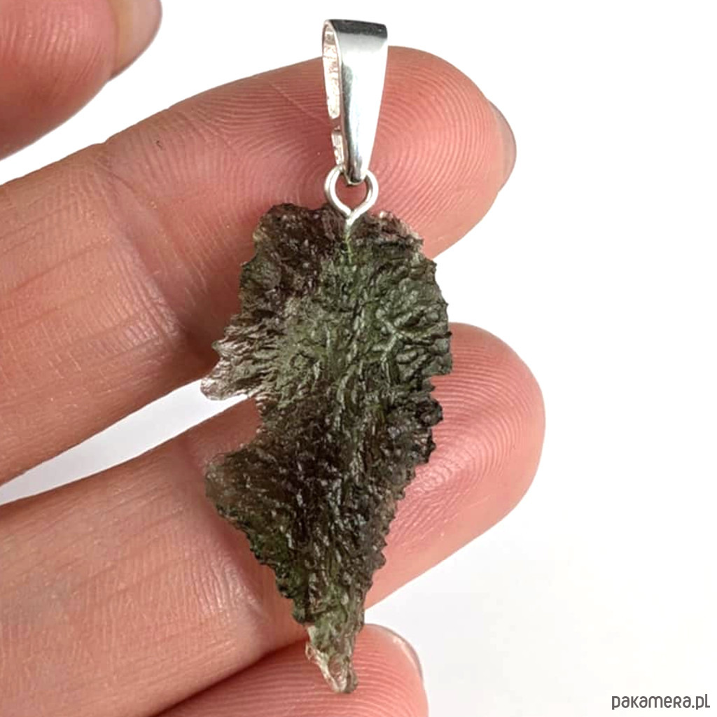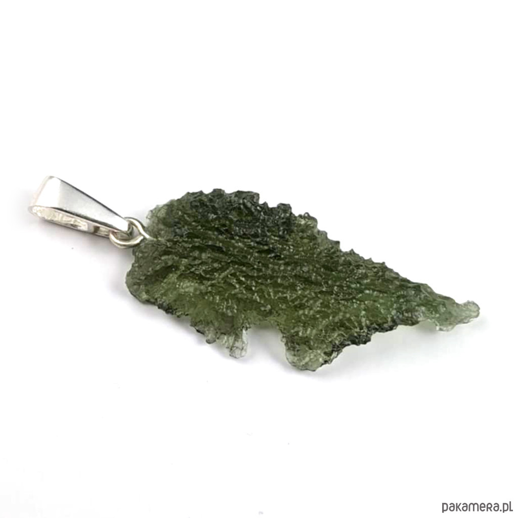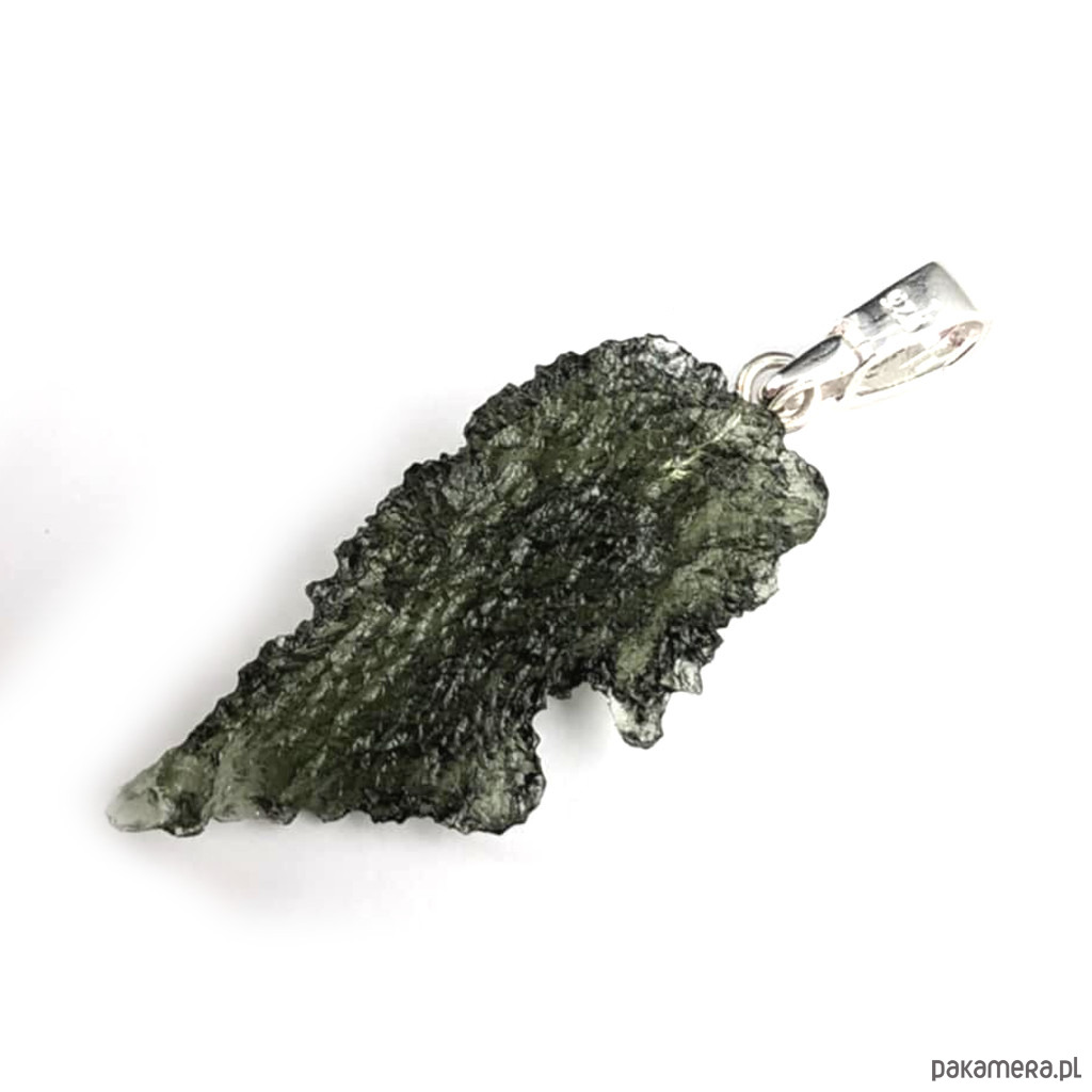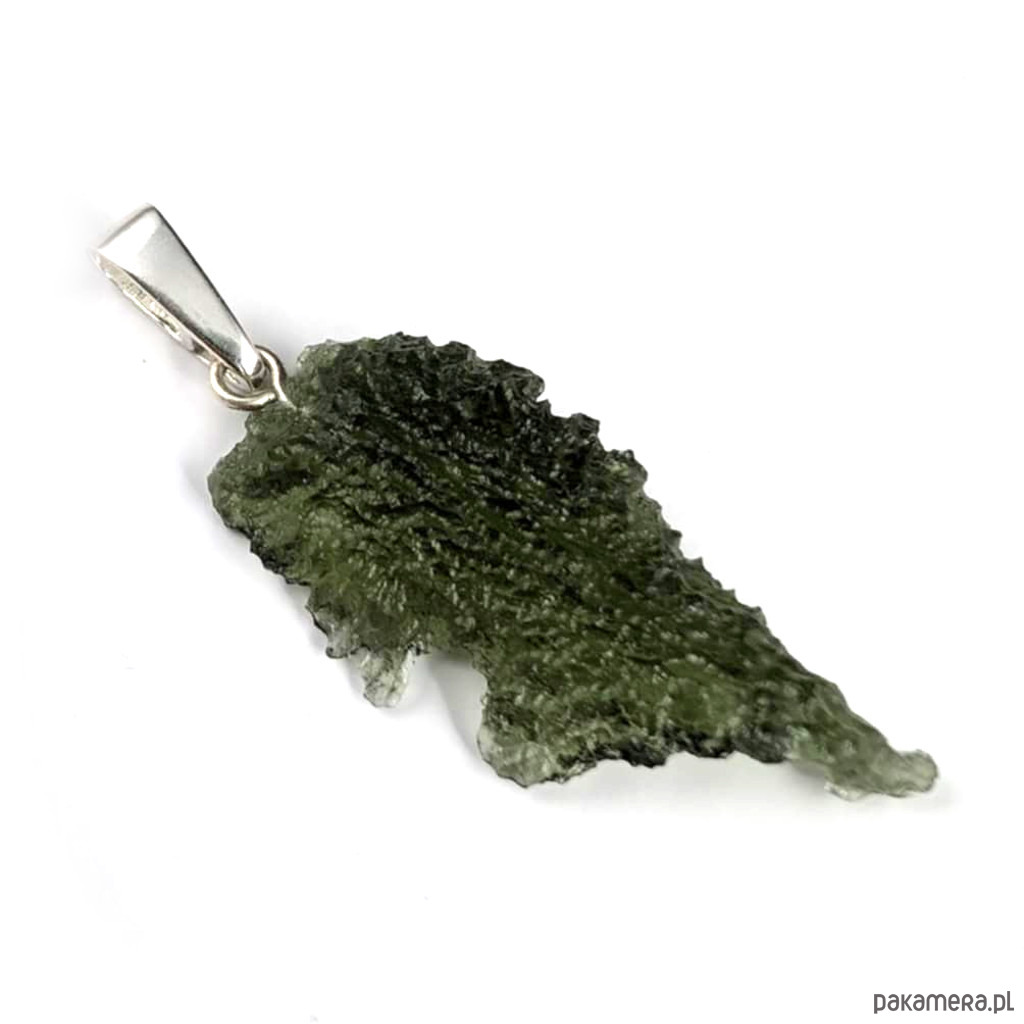 Surowy okaz jakościowego, przejrzystego mołdawitu. Piękna struktura kamienia. Wymiary oprawy 28 x 14 mm, z krawatką długość 40 mm. Waga 2,11 g. Krawatka srebro pr. 925. Wisior zostanie wysłany w ozdobnym pudełeczku.