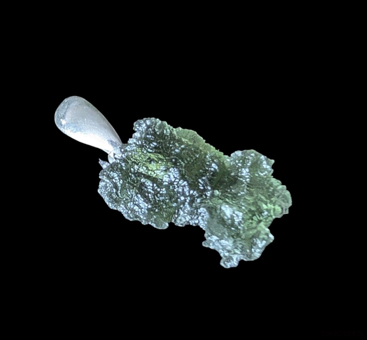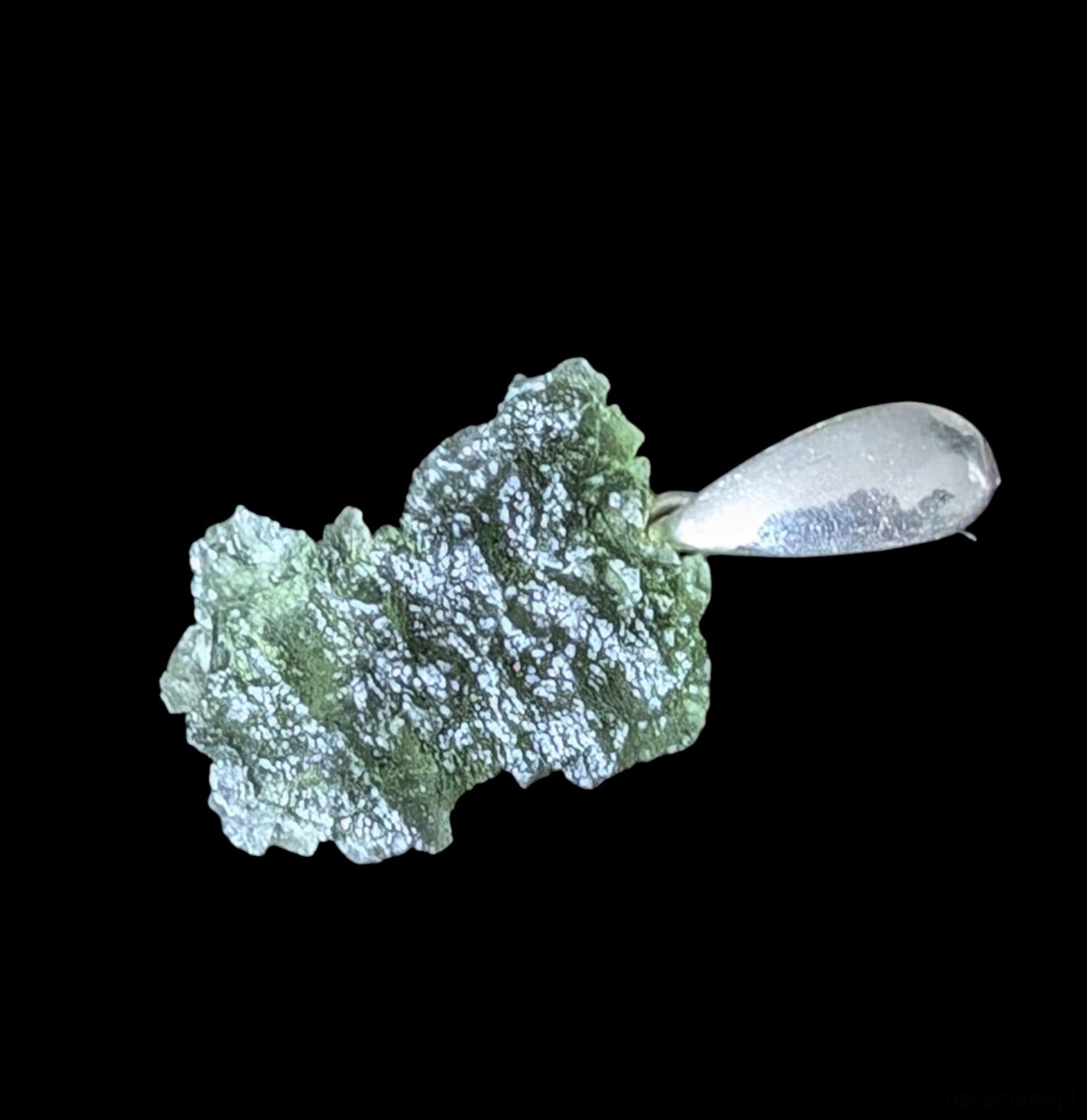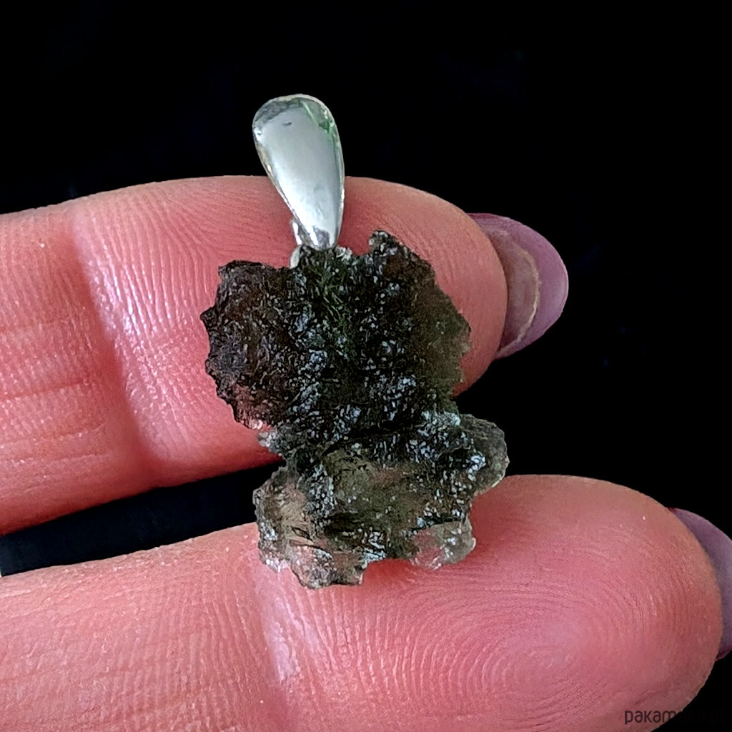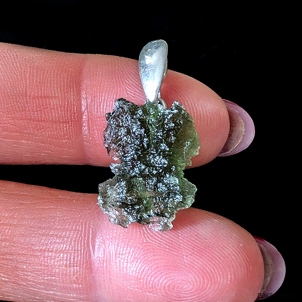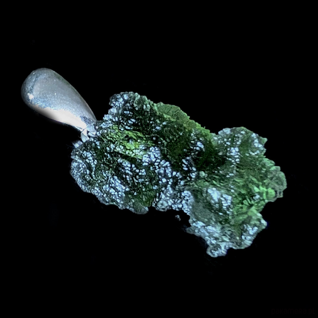 Surowy okaz jakościowego, przejrzystego mołdawitu. przepiękna struktura kamienia. Bardzo polecam! Wymiary oprawy 18 x 14 mm, z krawatką długość 27 mm. Waga 2,10 g. Krawatka srebro pr. 925. Wisior zostanie wysłany w ozdobnym pudełeczku.