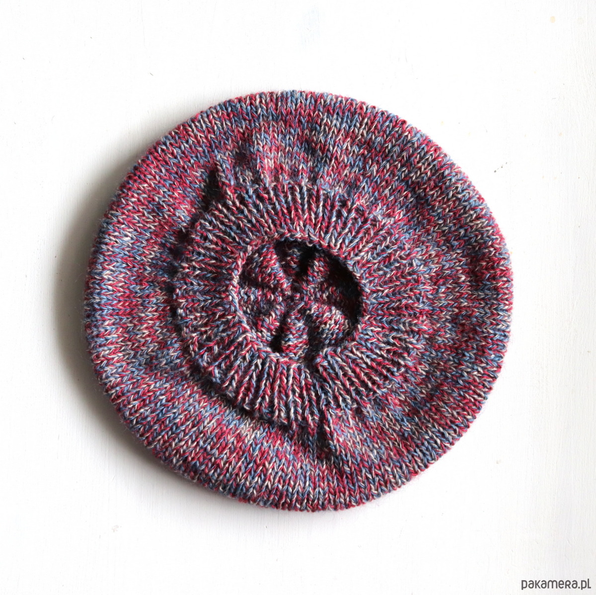 rozmiar: uniwersalny (lekko elastyczny, dopasowuje się do obwodu głowy), średnica beretu ok. 28-29 cm