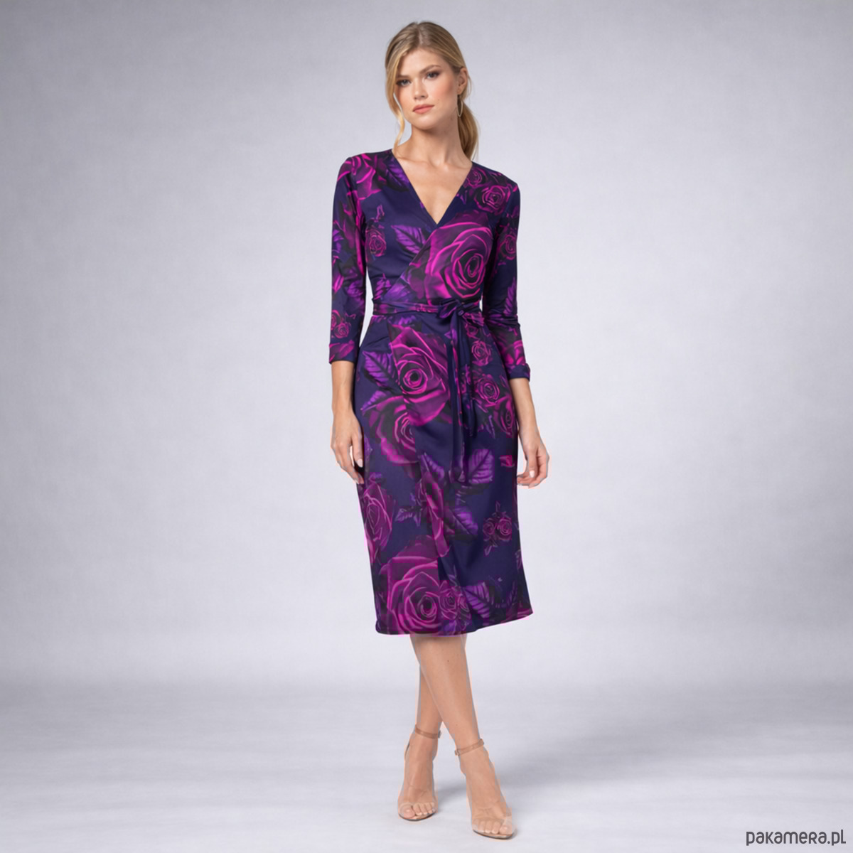 Rada: Wybierając swój rozmiar sukienki kopertowej najważniejszym wymiarem jest wymiar biustu - tu musi pasować idealnie, aby dekolt nie rozchodził się za bardzo. W talii i biodrach sama ją dopasujesz.