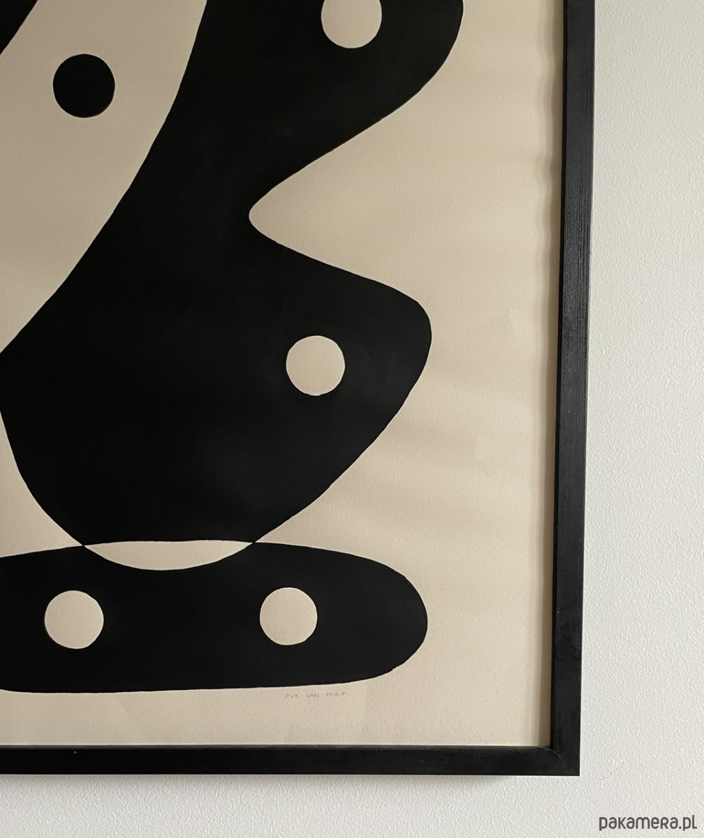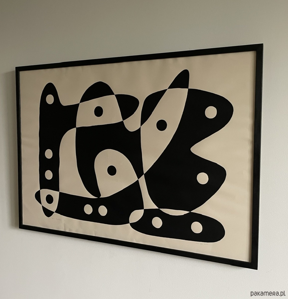 Praca oprawiona jest w czarną, drewnianą ramę ze szkłem