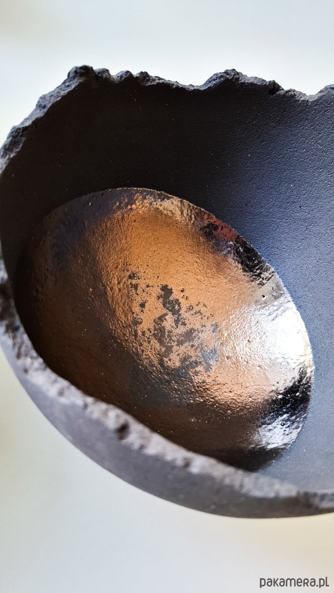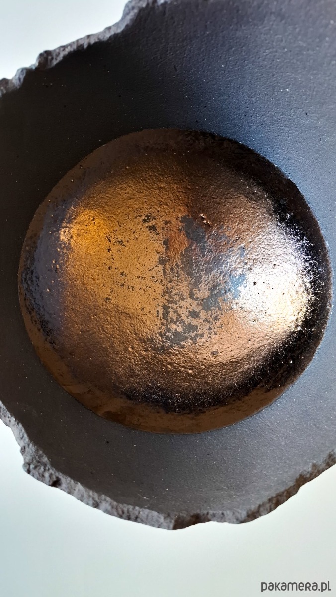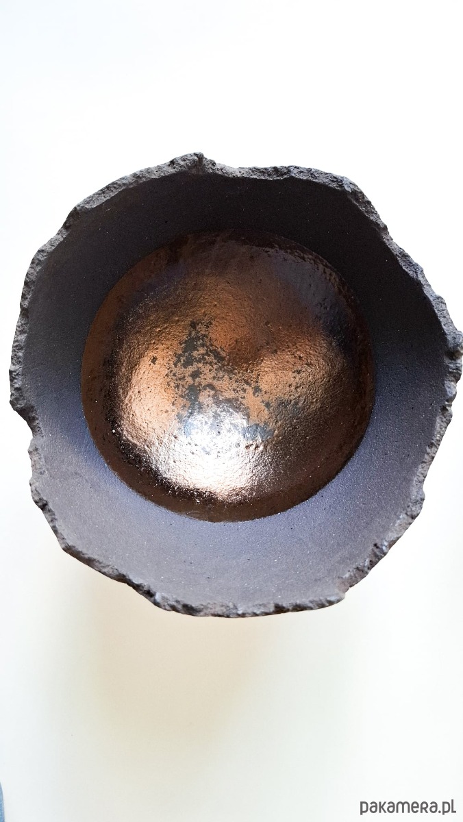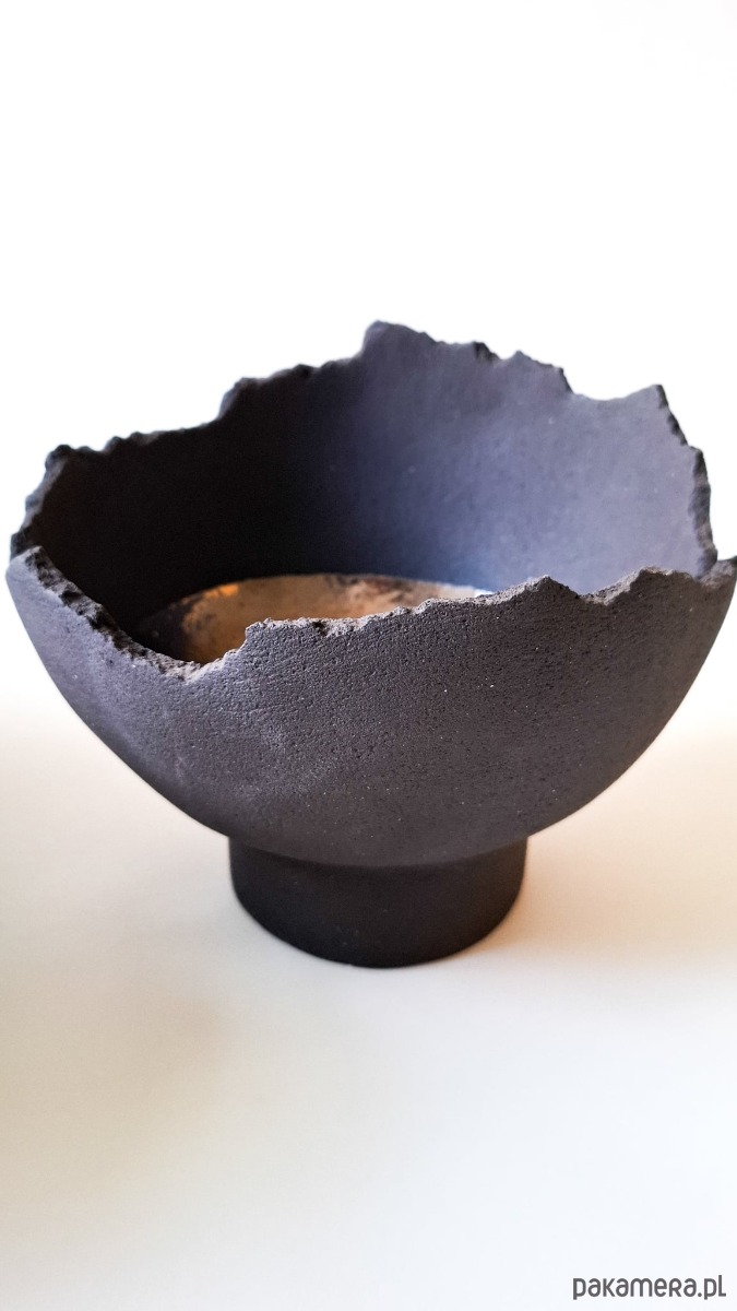 materiał: czarno grafitowa masa szamotowa, złote szkliwa