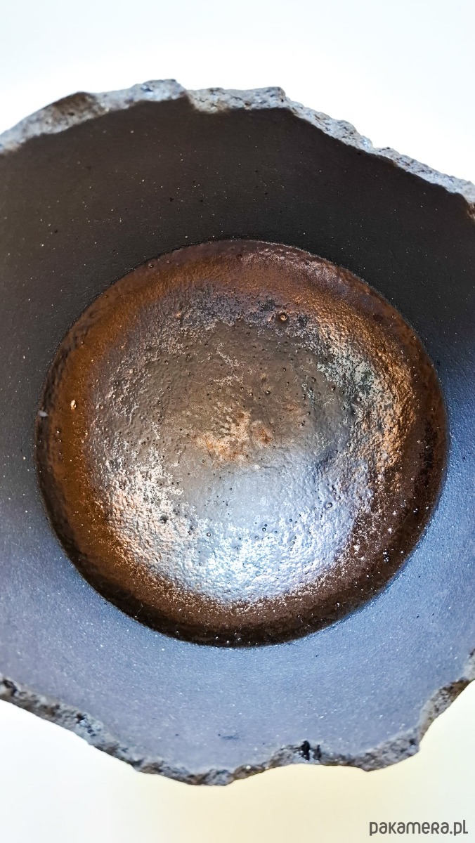 materiał: czarno grafitowa masa szamotowa, złote szkliwa