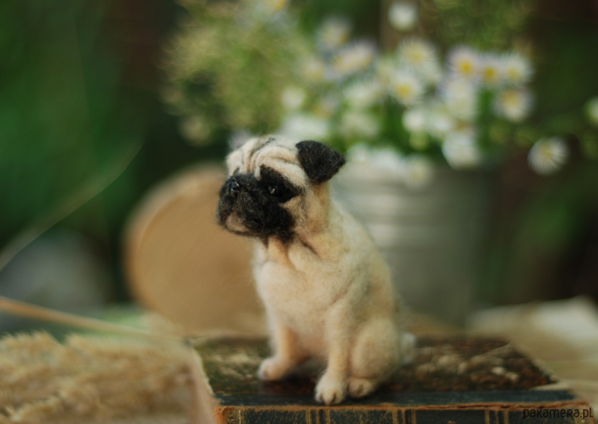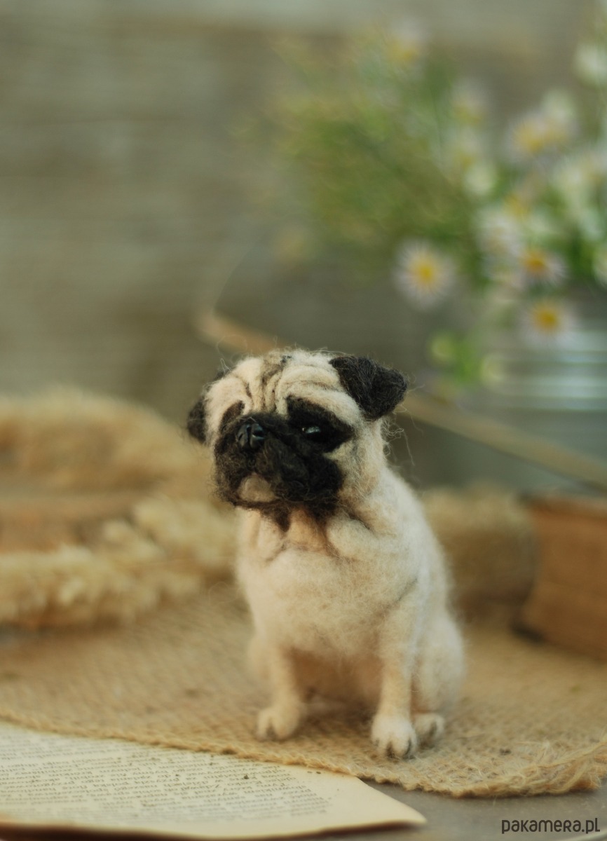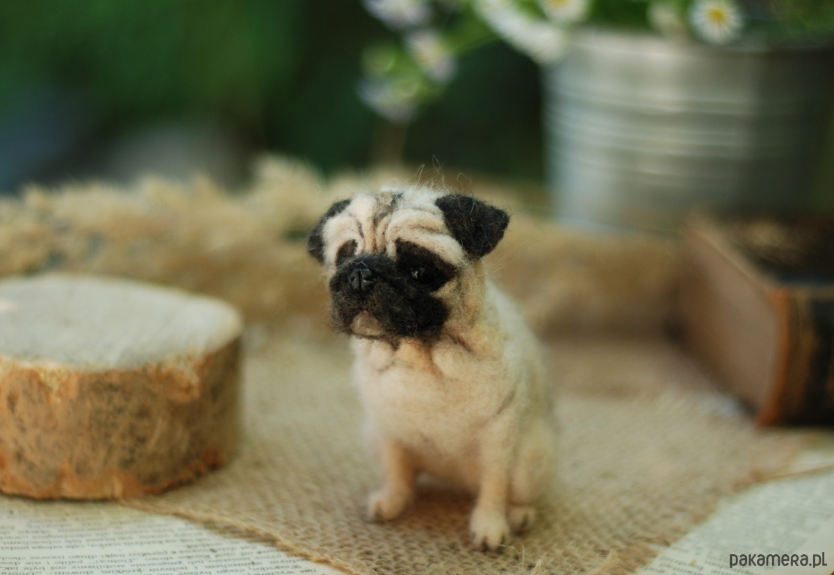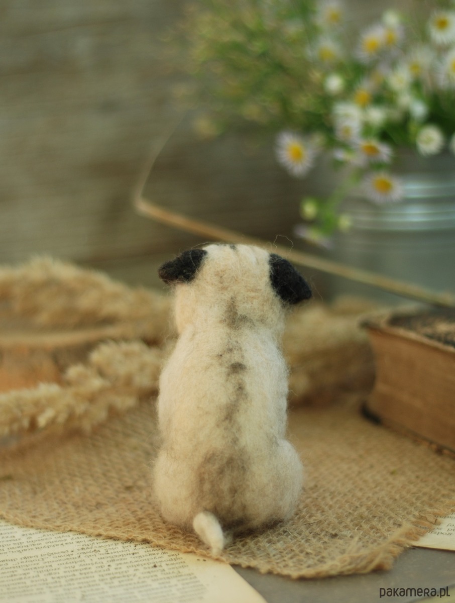 Pies wykonany metodą filcowania na sucho z wełny merynos.