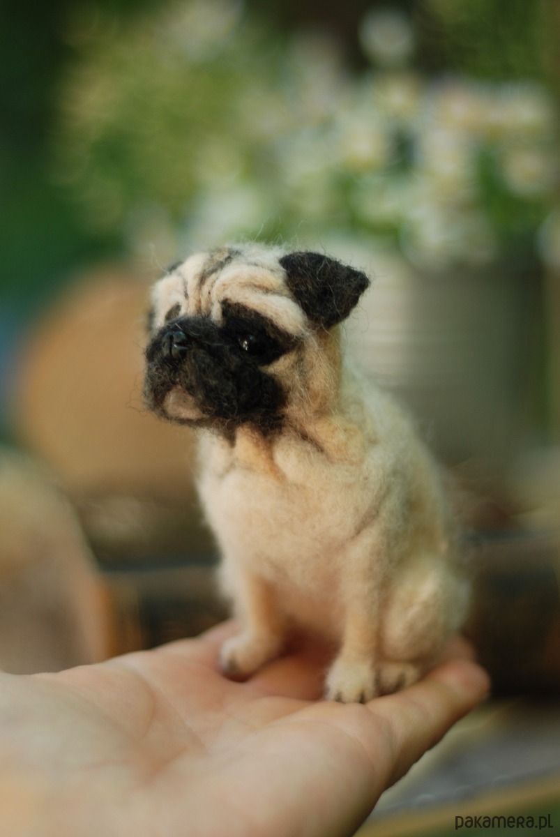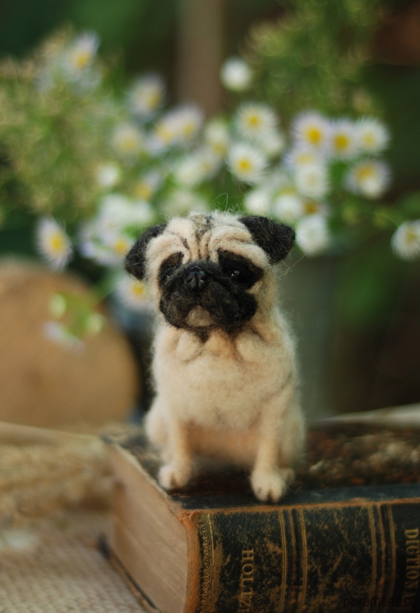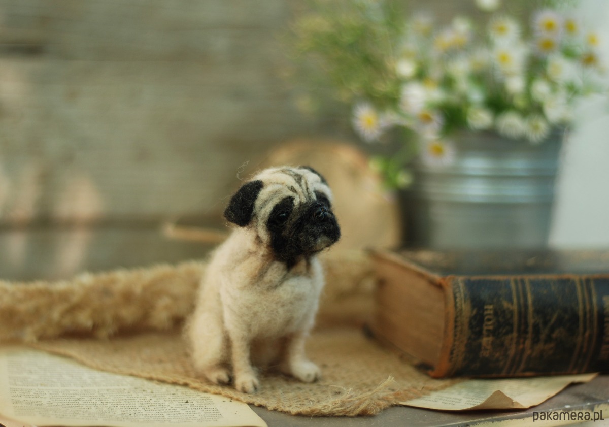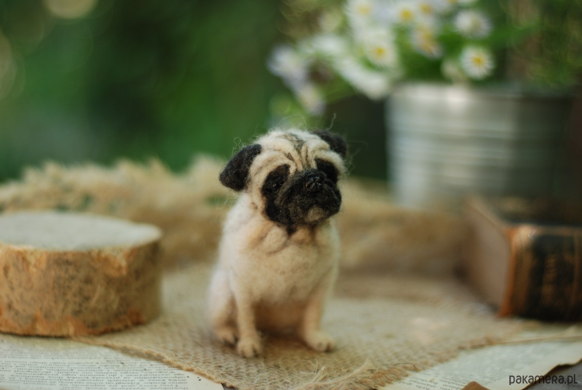 Pies wykonany metodą filcowania na sucho z wełny merynos.