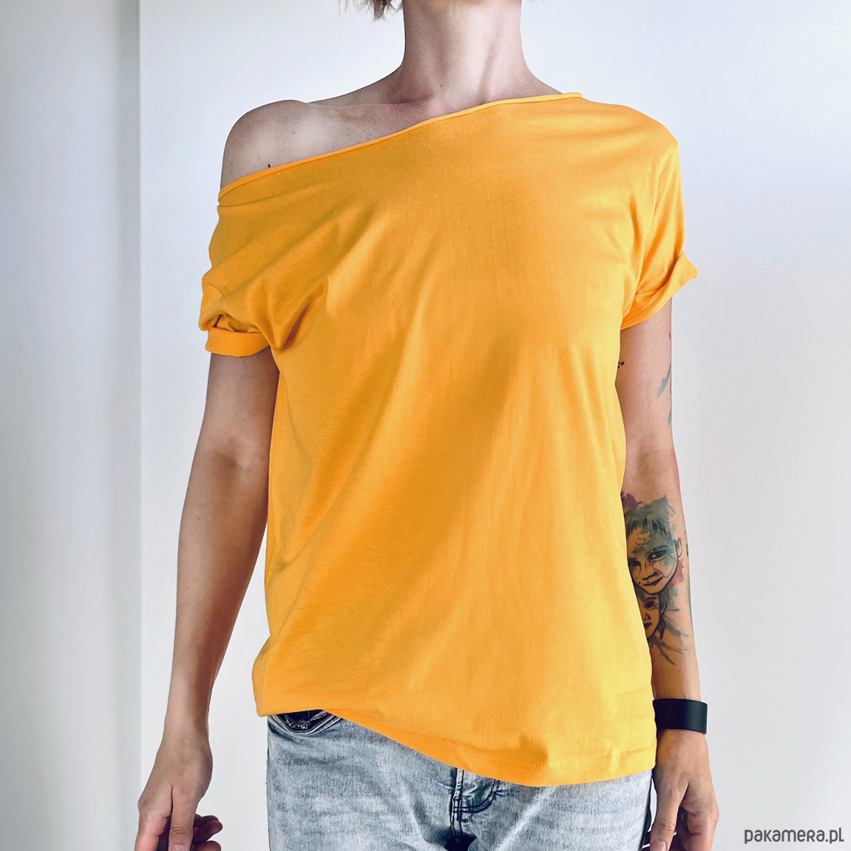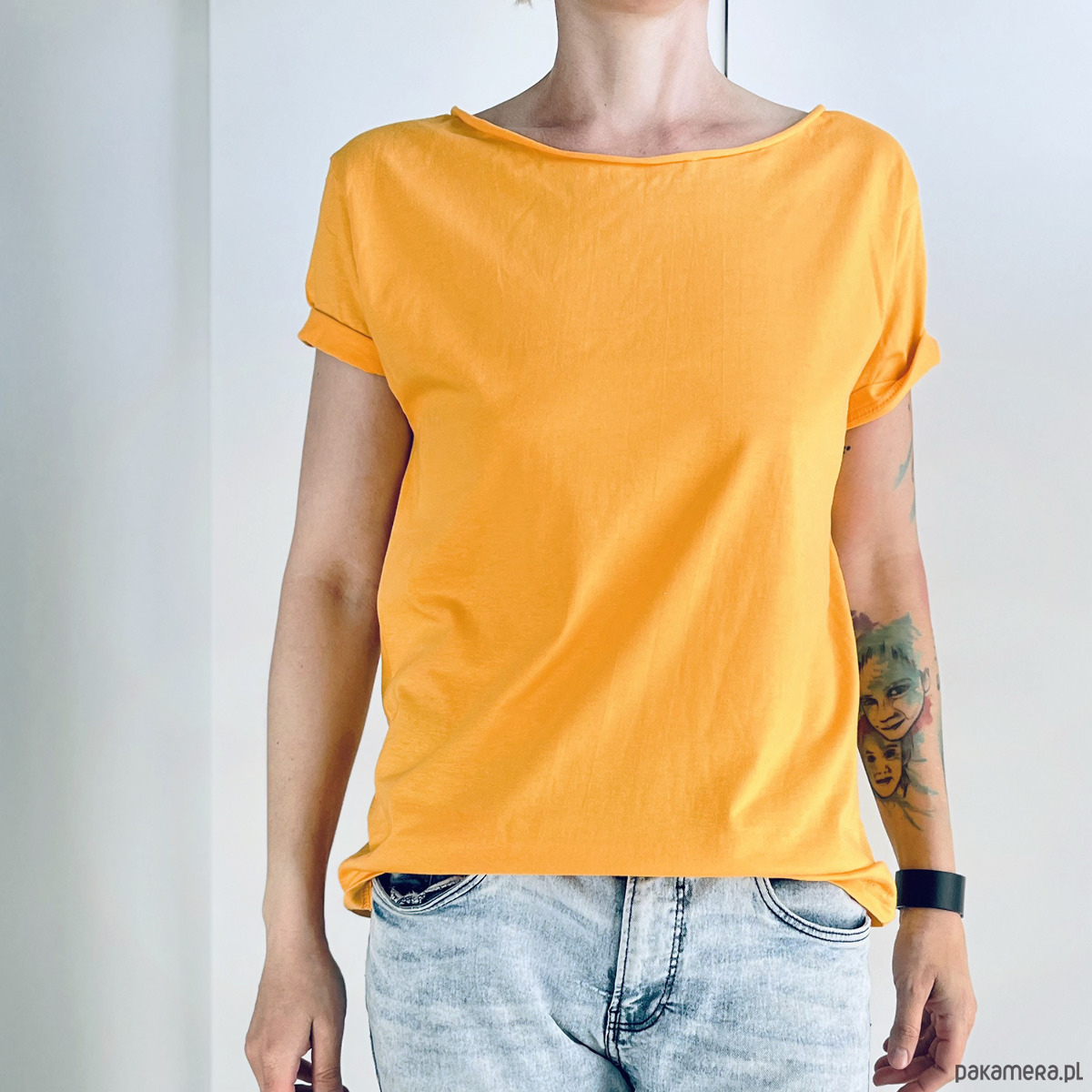 Gładki tshirt z ciętym dekoltem w odcieniu delikatnej moreli.
